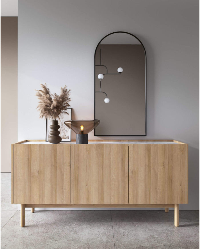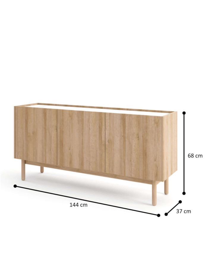 Boho komoda K144/68, trijų durų, Riviera Oak/Bianco marmuras