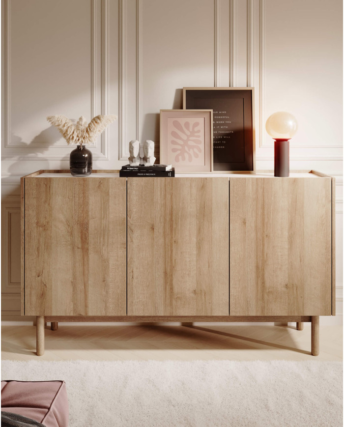 Boho komoda K144/83, trijų durų, Riviera Oak/Bianco marmuras