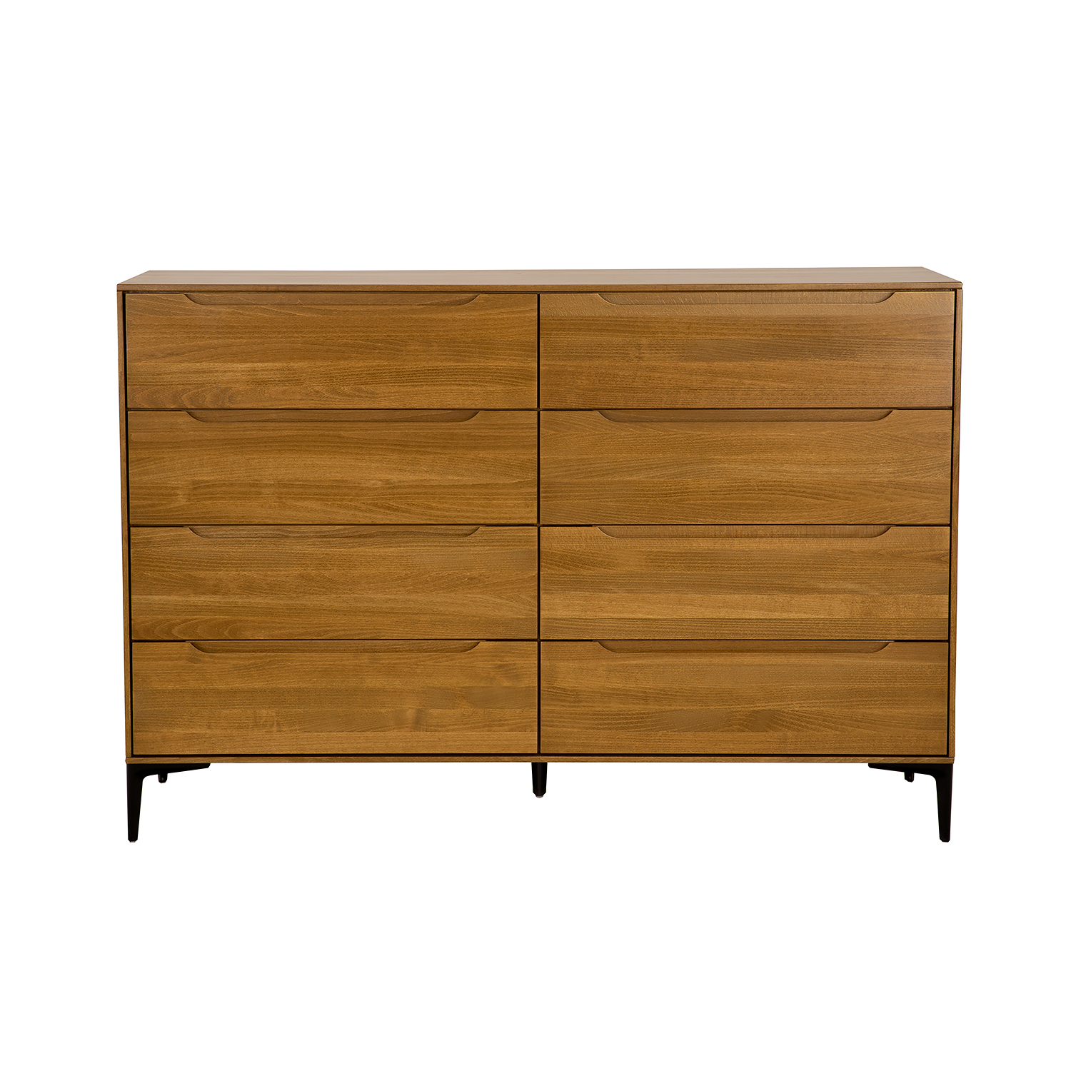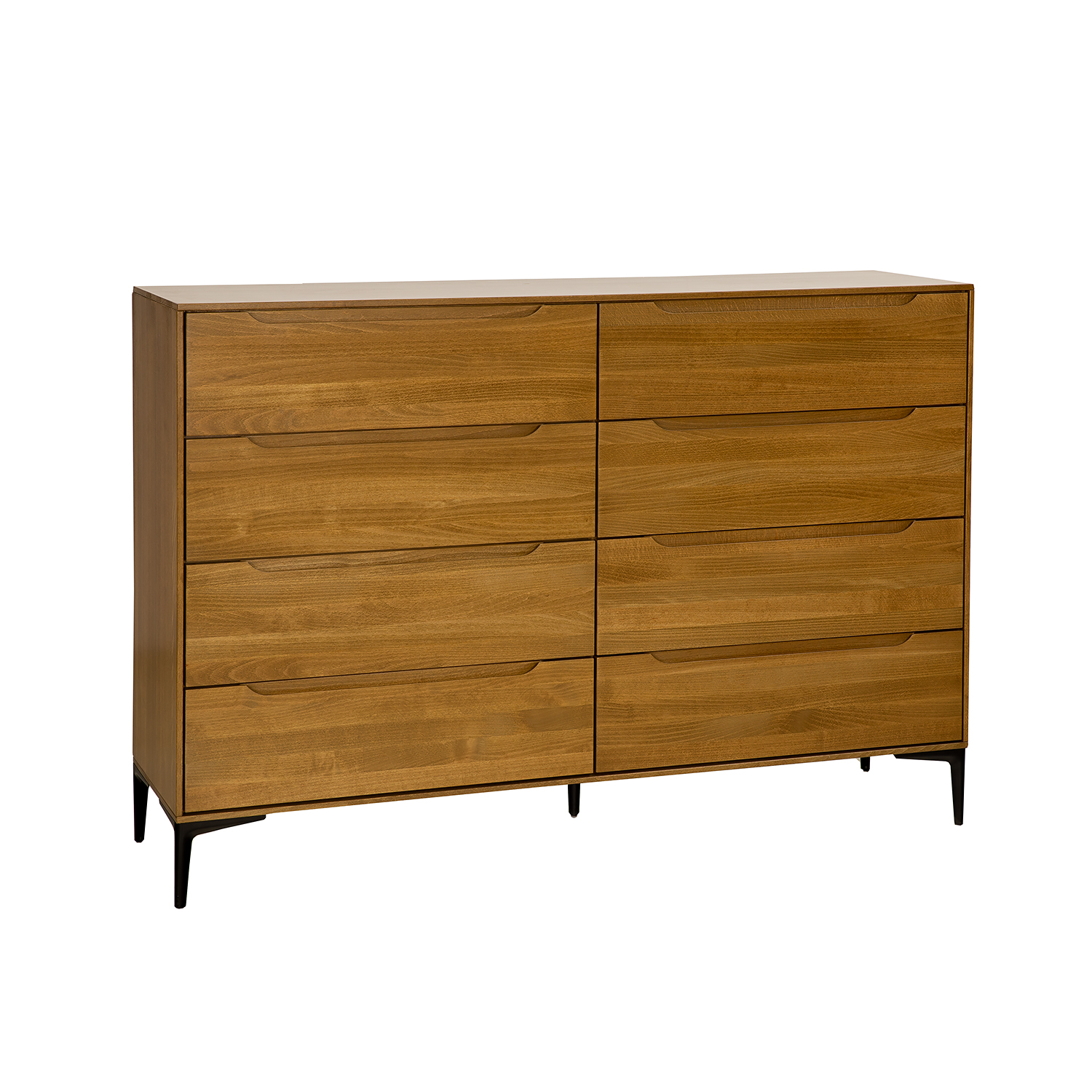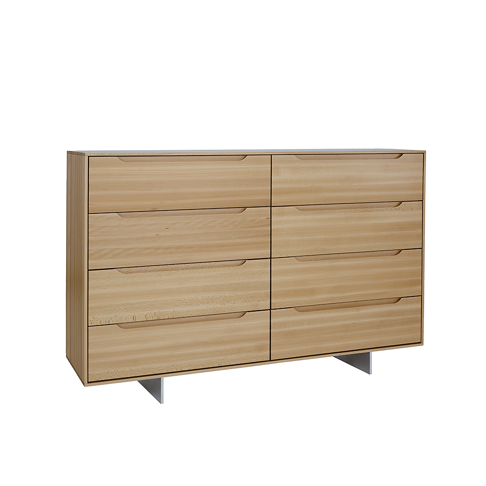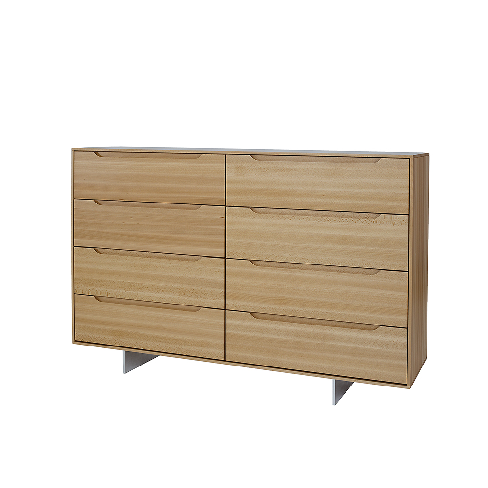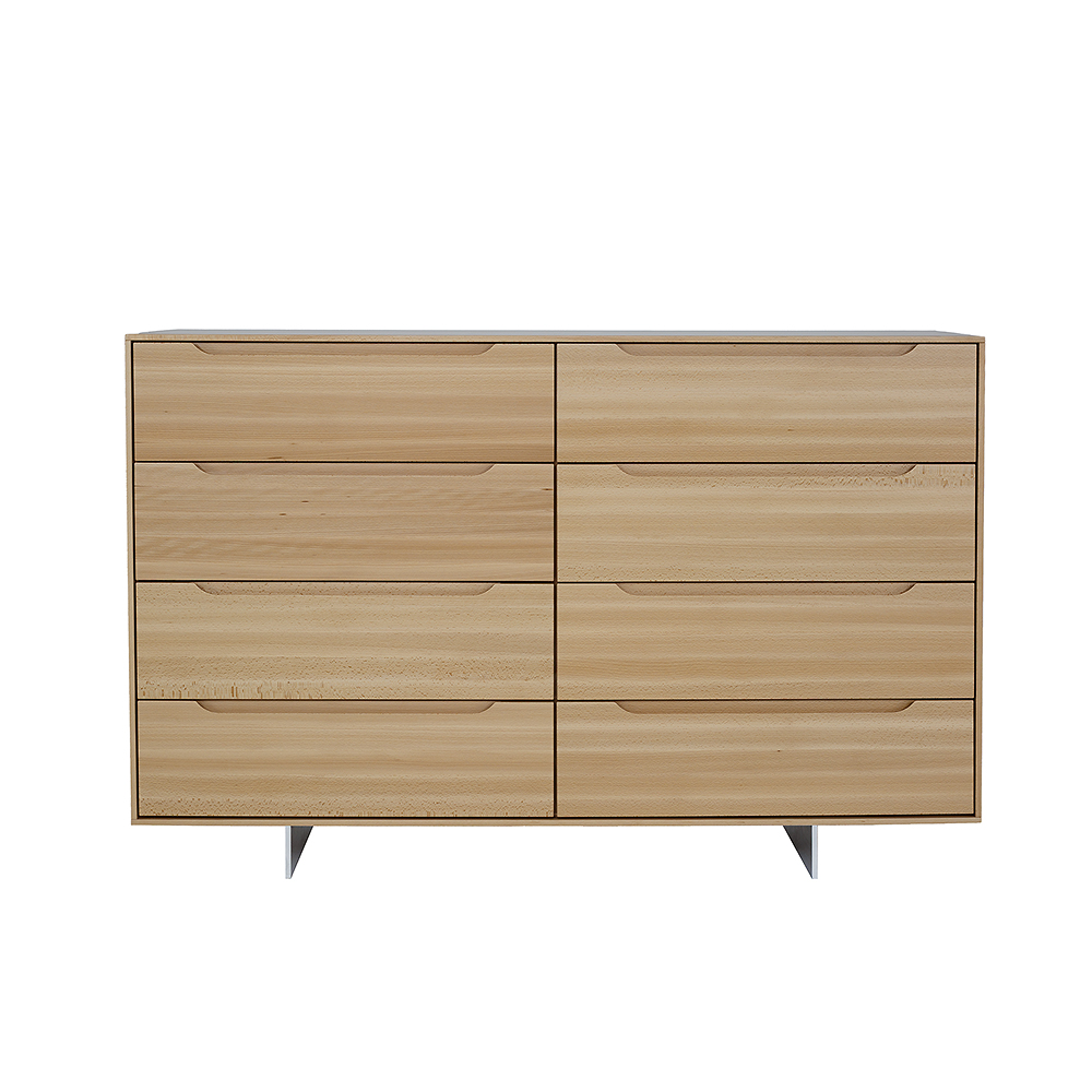 Buko medienos komoda KD420 iš „Modern“ kolekcijos buvo sukurta galvojant apie modernaus minimalizmo mėgėjus. Nepaisant paprastos formos, ji žavi ir traukia dėmesį nuo pat pirmos akimirkos, kai įžengiate. Tvirtus, paprastus fasadus papildo subtilios, raižytos medinės rankenėlės, kurios sukuria atidarymo ir uždarymo sistemą. Erdvūs ir funkcionalūs stalčiai puikiai tinka laikyti daugybę namų aksesuarų. Kitas privalumas – didelis buko medienos stalviršis, ant kurio gražiai atrodys šeimos relikvijos ar nuotraukos. Komoda stovi ant mažų medinių kojelių. Papildomai galima įsigyti 10 cm aukščio aliuminio kojeles (NG002) ir 15 cm aukščio metalines kojeles (NG003). Tai leidžia lengvai pakeisti baldo charakterį ir stilių.