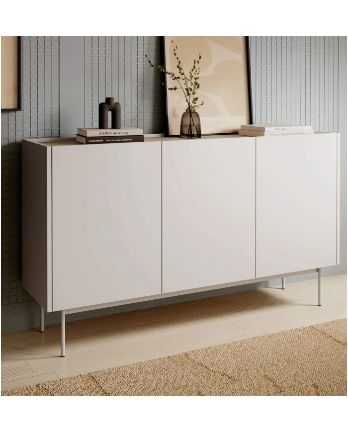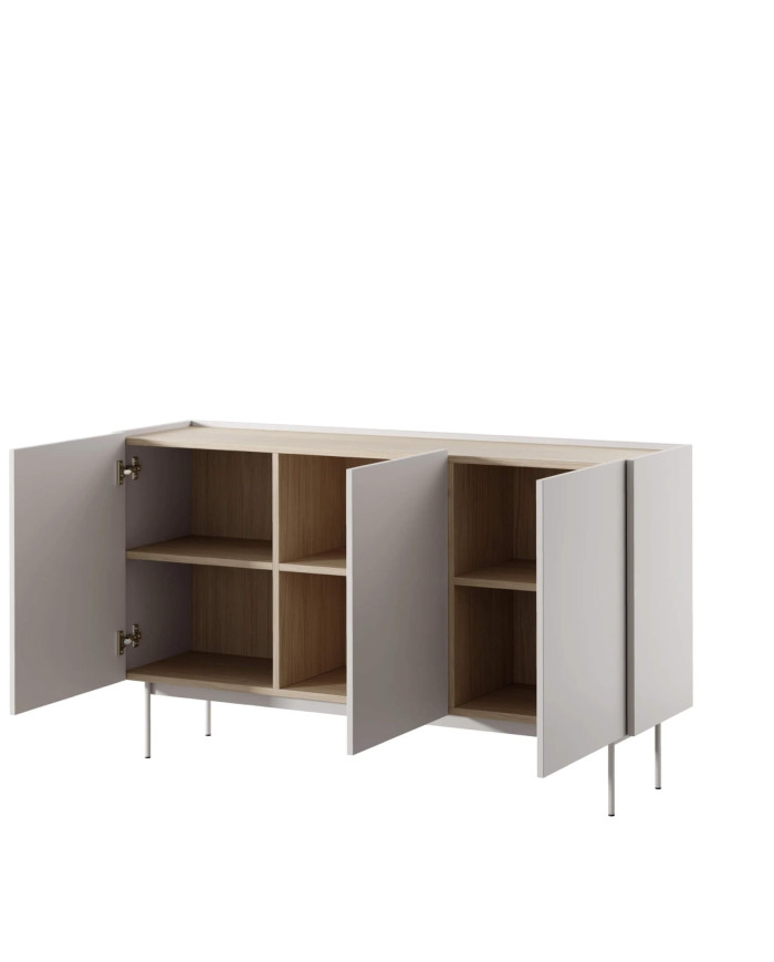 Erdvi „Color K144“ komoda su durelėmis pasižymi derančia „Cashmere“ spalvų gama priekyje ir korpuse, o viršuje ir viduje – „Linea Oak“ apdaila. Spintelė pagaminta iš įbrėžimams atsparios laminuotos plokštės, todėl yra atsparesnė įbrėžimams ir lengvai valoma. Komodoje yra trys erdvios spintelės su varstomomis durelėmis, kiekviena atskirta patogia lentyna. Komplektas pasižymi patraukliu spalvų deriniu. Komoda pristatoma supakuota, kartu su lengvai suprantamomis surinkimo instrukcijomis ir furnitūra.