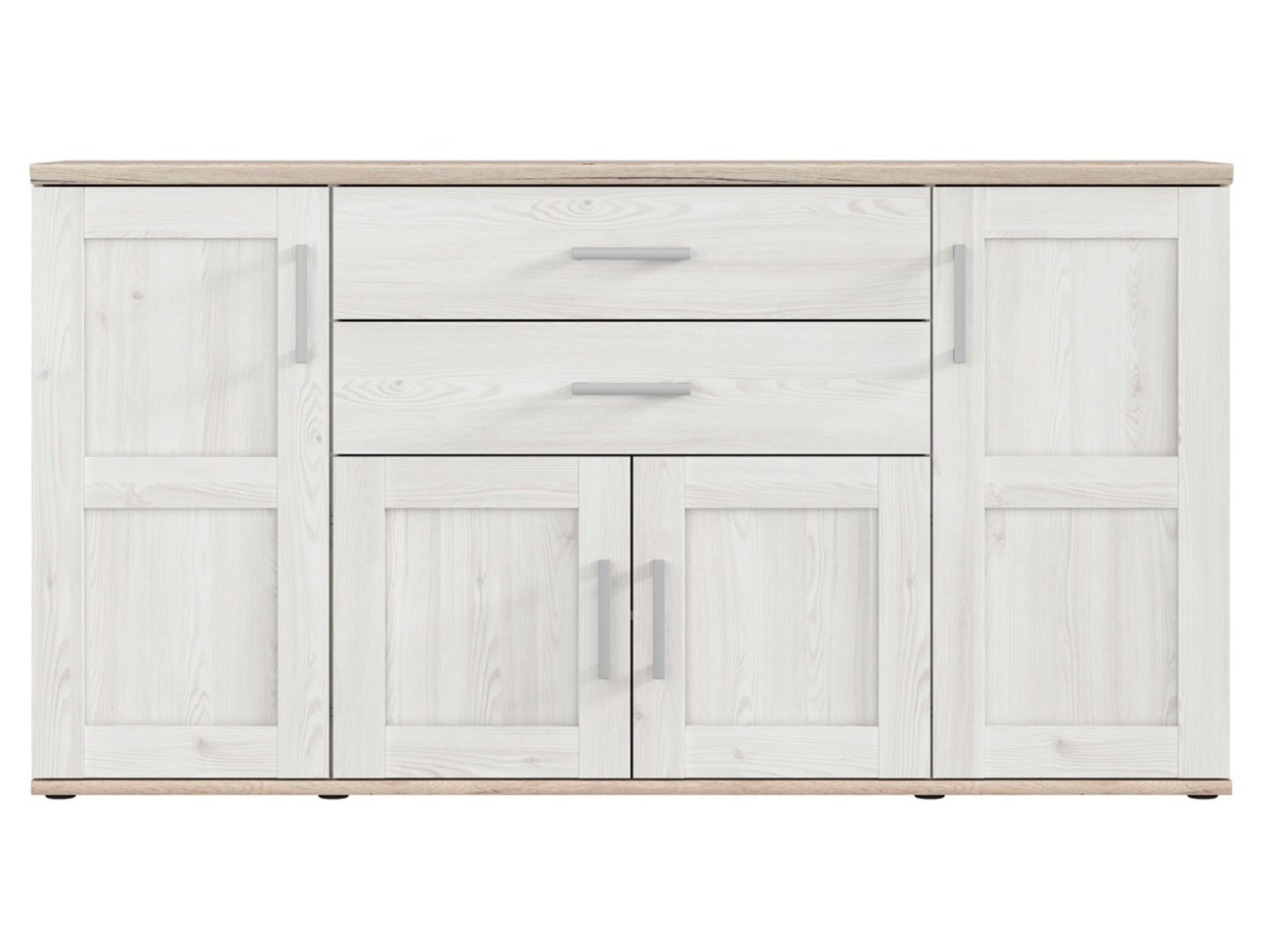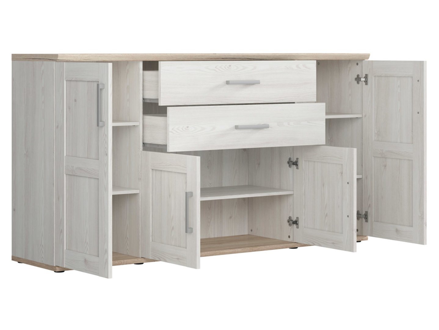 Keturių durų komoda su dviem stalčiais ROMANCE 186 cm šviesus Sibiu maumedis/šviesus San Remo ąžuolas
