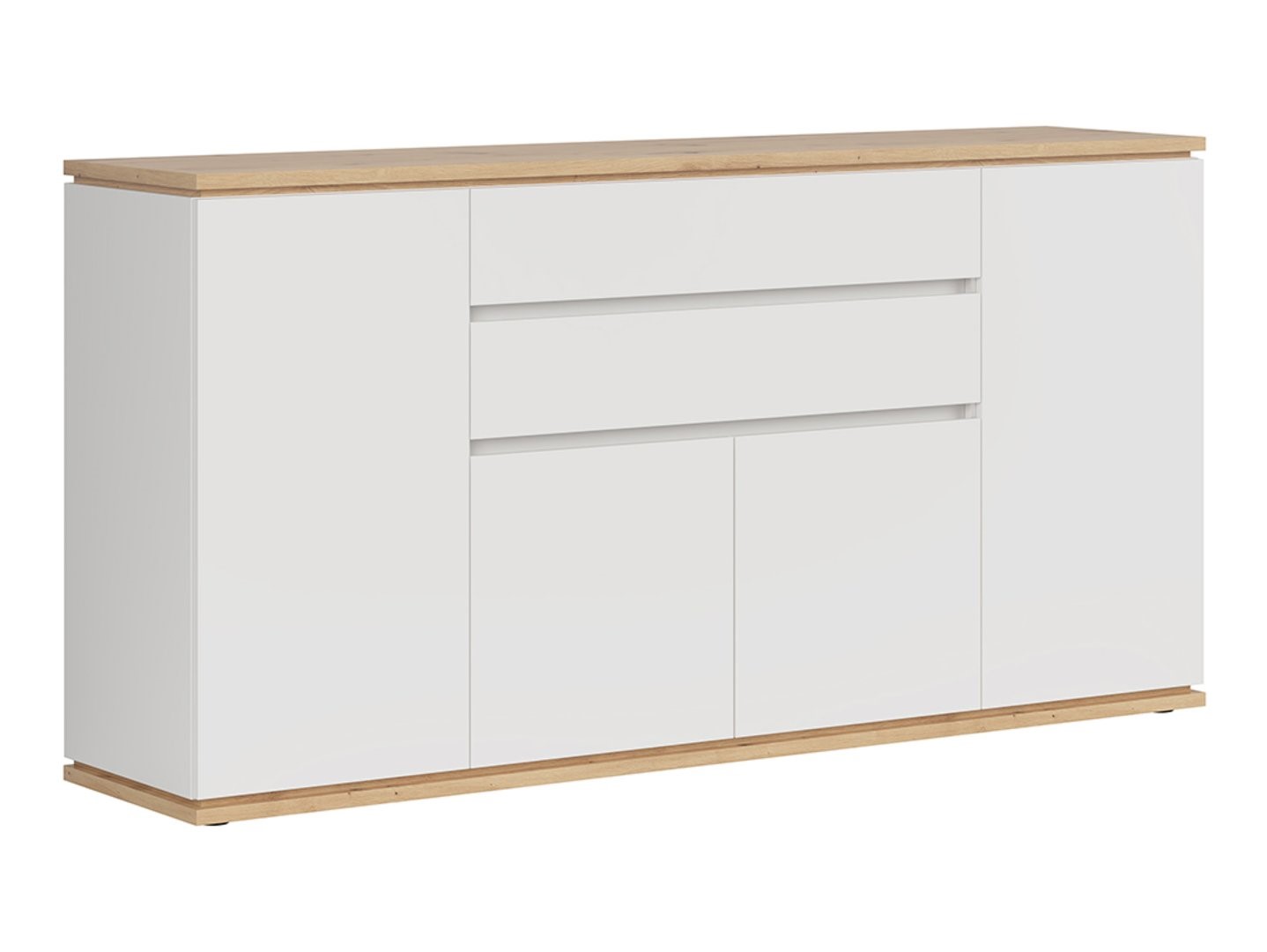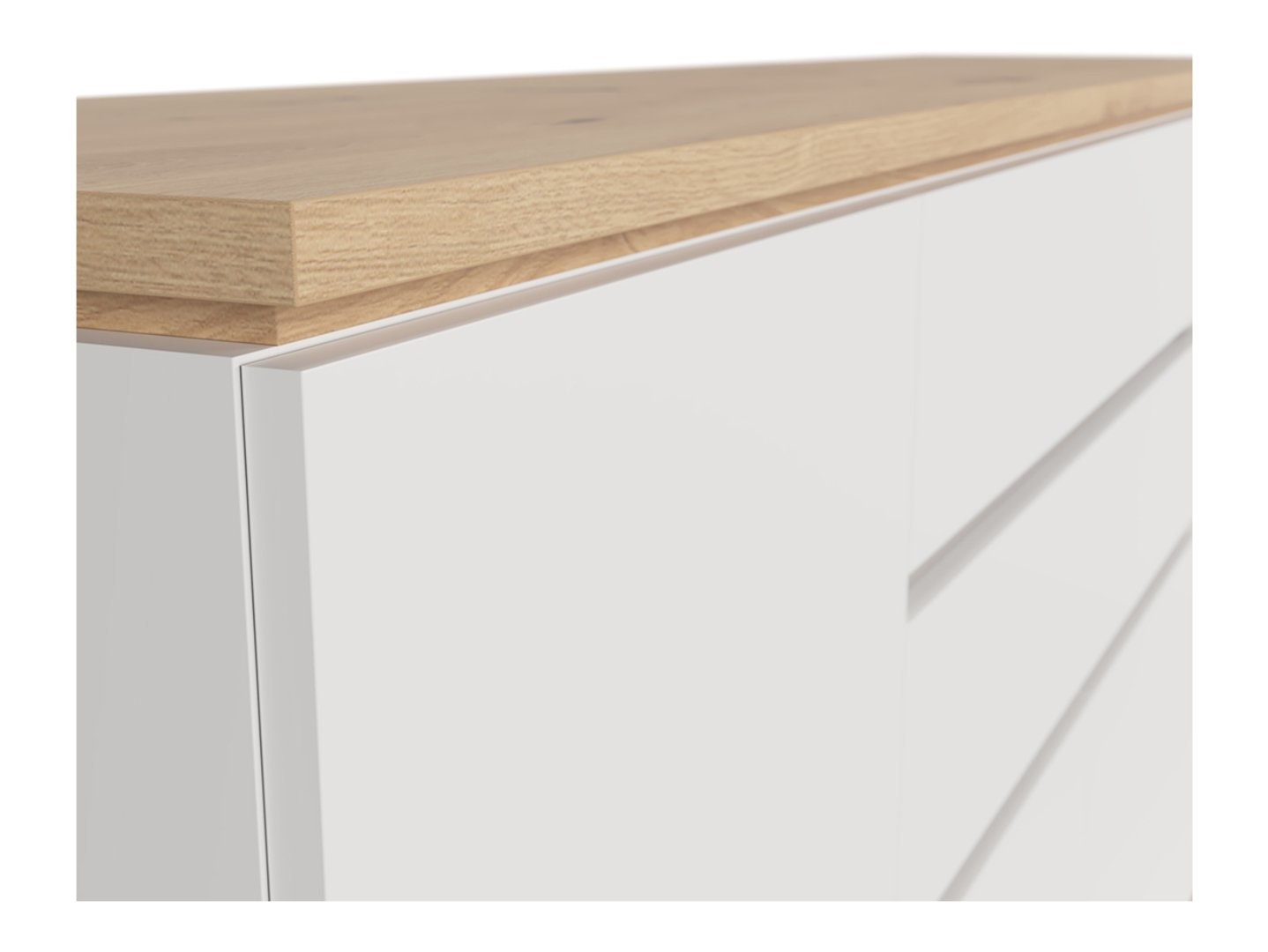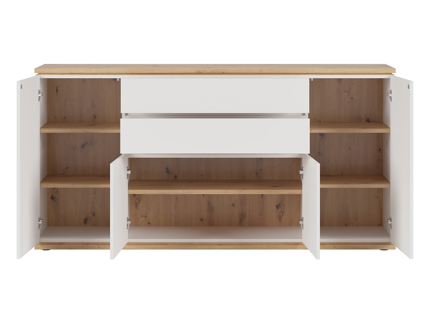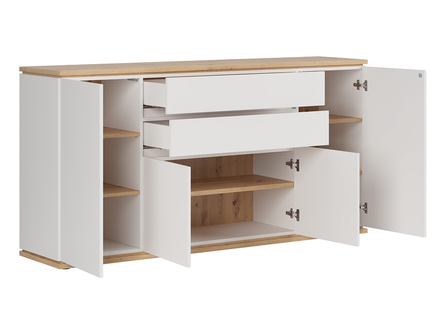YAMAEL komoda su keturiomis durimis ir dviem stalčiais, 184 cm, balta/dirbtinio ąžuolo spalvos