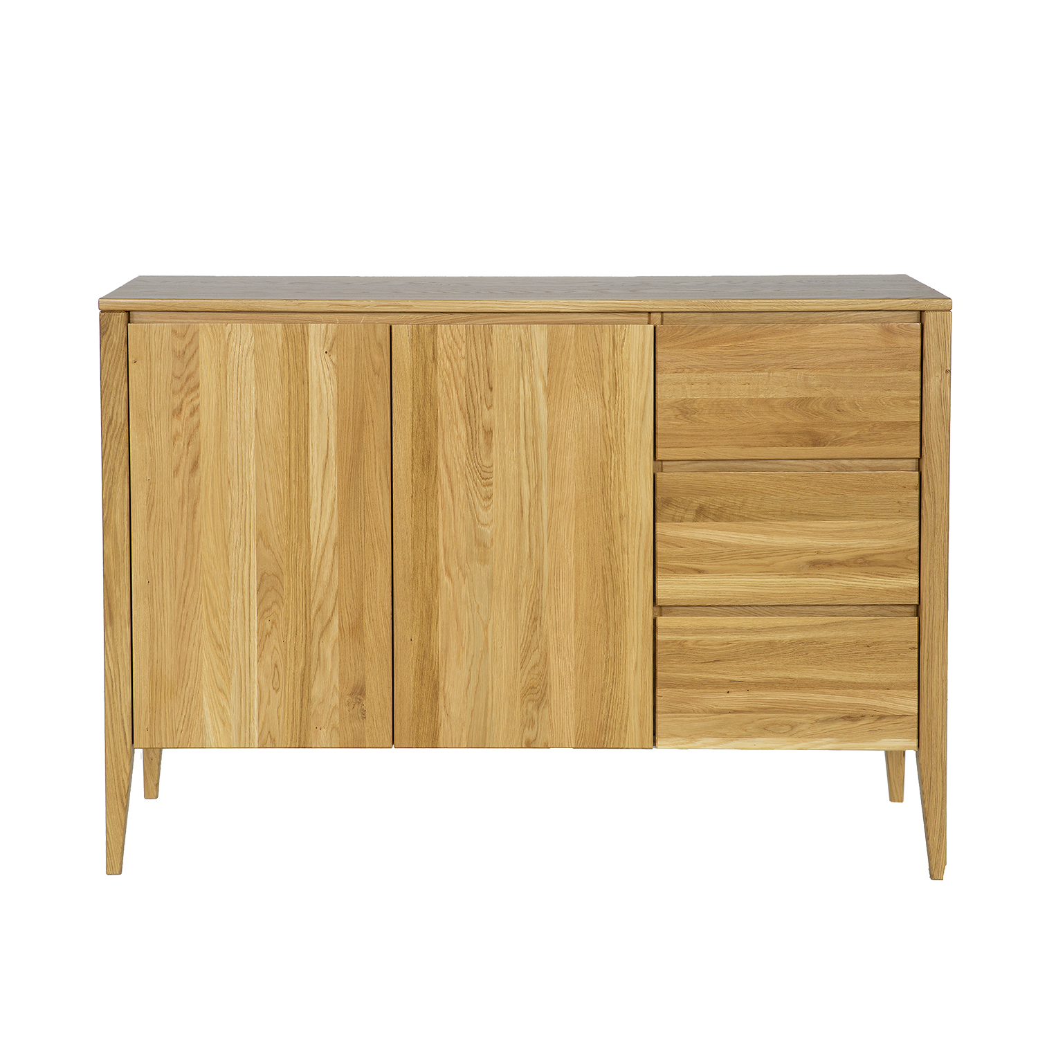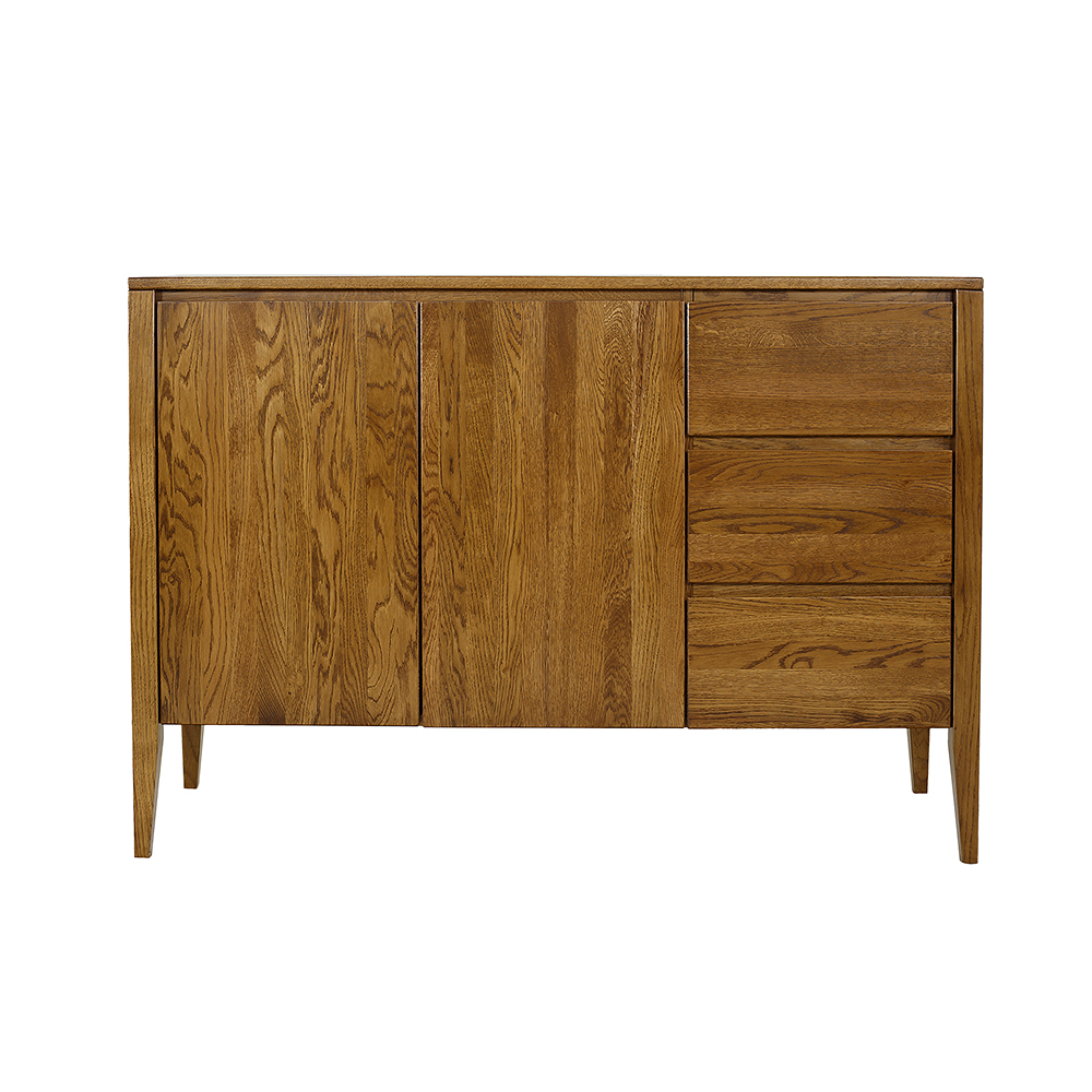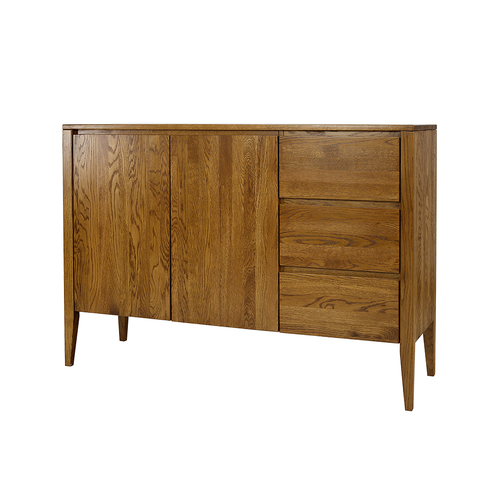 Ąžuolinė komoda KD338 yra vienas iš tų baldų, kurie patraukia akį vos įžengus. Ji derina modernumą su vintažinio stiliaus prisilietimu. Paprasta, tvirta forma remiasi į aukštas kojeles, suteikiančias visai konstrukcijai lengvumo. Gražūs ąžuoliniai stalčių ir spintelių fasadai puošti subtiliomis, raižytomis medinėmis rankenėlėmis, sukuriančiomis modernią atidarymo ir uždarymo sistemą. Didelis medinis stalviršis užbaigia vaizdą, puikiai tinkantis šeimos nuotraukoms ar suvenyrams eksponuoti.
