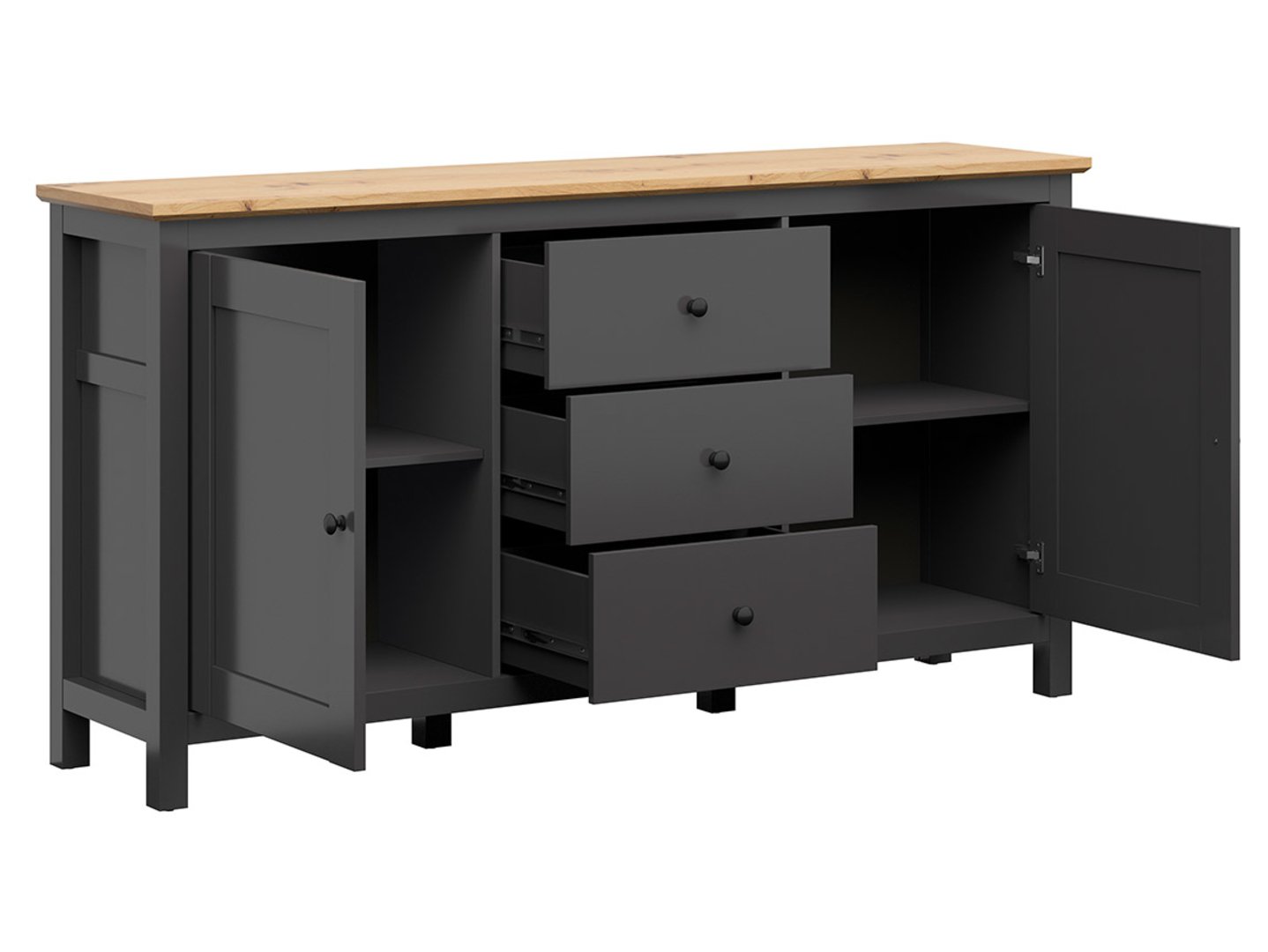 HESEN komoda su dviem durimis ir trimis stalčiais, 186 cm, grafito/dirbtinio ąžuolo spalvos