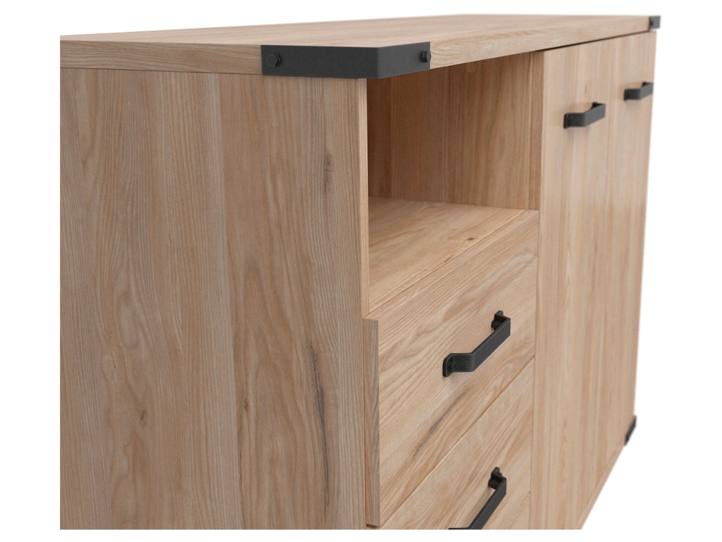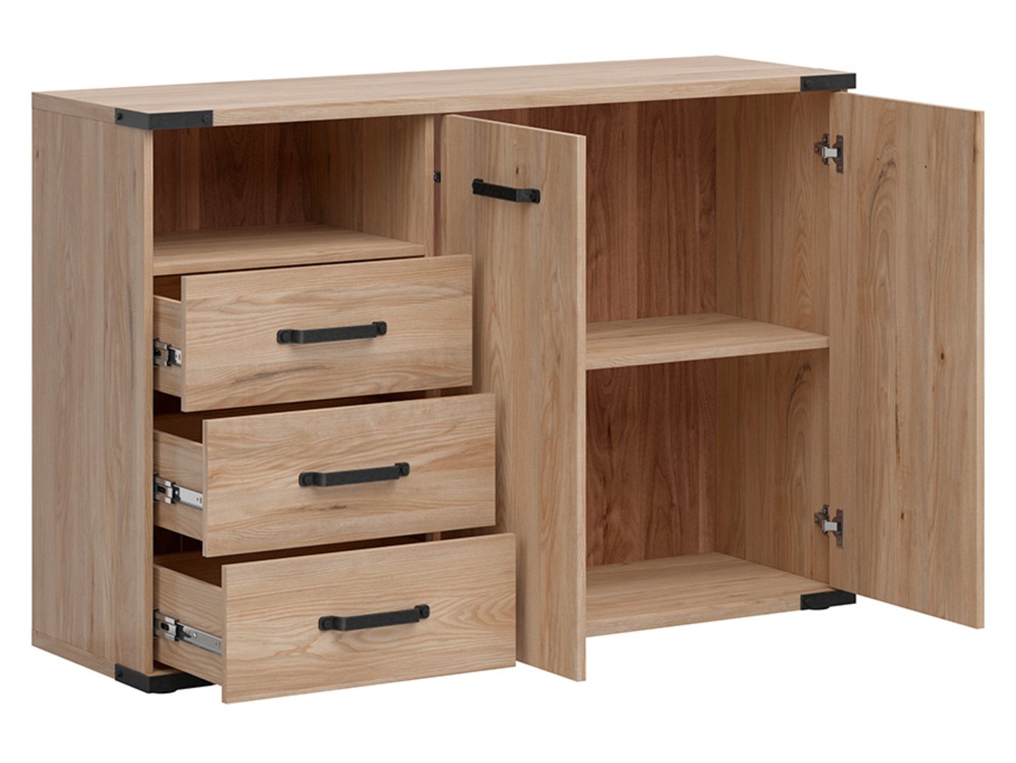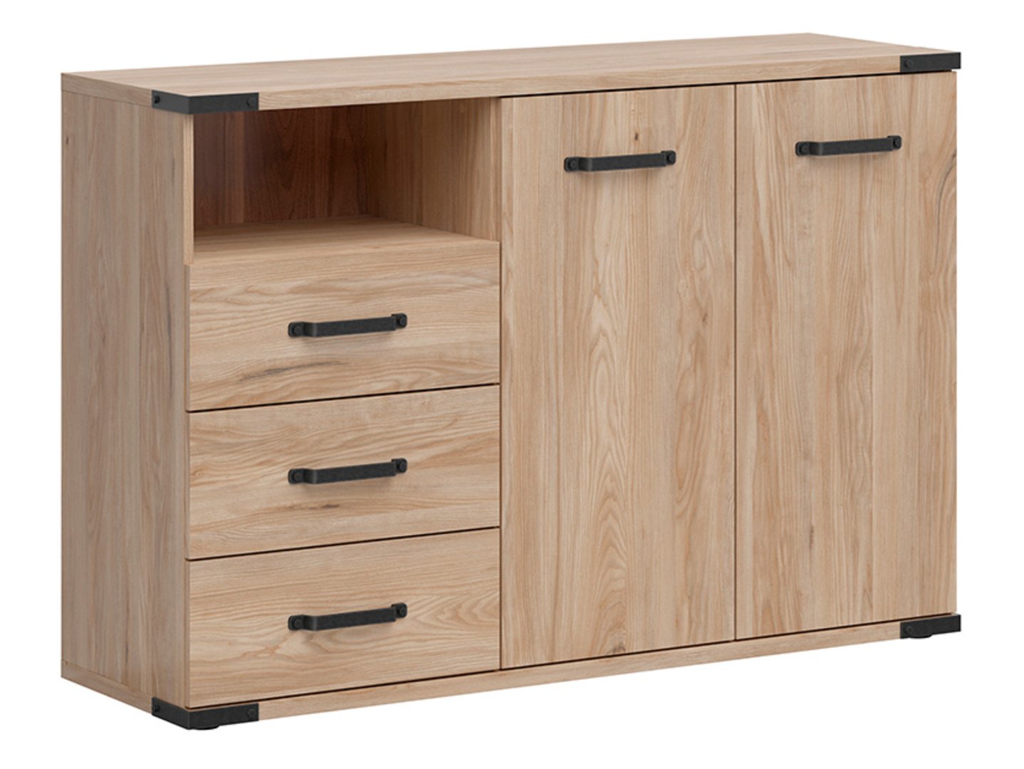 Komoda „Lara“ – erdvė ir funkcionalumas jūsų kambariui. Jaunimo kambario dizainas – tai unikalus iššūkis, reikalaujantis atsižvelgti tiek į estetiką, tiek į praktiškumą. „Lara“ kolekcija siūlo baldus, kurie puikiai atitinka šiuos kriterijus, sukurdami modernų ir lofto stiliaus interjerą, džiuginantį tiek išvaizda, tiek funkcionalumu. Komoda „Lara“ suteikia daug vietos įvairiems daiktams susidėti. Drabužius, dokumentus ir kitus daiktus galima laikyti dviejų durų spintelėje ir trijuose erdviuose stalčiuose. Platus stalviršis – puiki vieta šeimos nuotraukoms, apdovanojimams ar dekoracijoms eksponuoti, suteikiant kambariui asmeniškumo. Komoda „Lara“ traukia dėmesį ryškia Baltarusijos uosio fanera. Ši natūralios medienos tekstūros imitacija suteikia baldui elegancijos ir jaukumo, sukurdama harmoningą atmosferą jaunimo kambaryje. Unikalios aplikacijos ant viršutinės dalies ir pagrindo krašto, taip pat stilingos juodos rankenėlės suteikia komodai charakterio ir unikalų stilių. Komoda „Lara“ buvo sukurta galvojant apie kasdienį komfortą. Dėl švelnaus uždarymo priedų durelių atidarymas ir uždarymas yra beveik tylus. Tai ypač svarbu paauglio miegamajame, kur labai svarbus ramus miegas ir susikaupimas. Komoda „Lara“ puikiai dera su kitais kolekcijos elementais. Ją galite derinti su tos pačios linijos lova, rašomuoju stalu, spinta ir lentynų bloku, sukurdami darnų ir funkcionalų išplanavimą paauglio kambaryje ar biure. Tai padės palaikyti tvarką ir estetiką erdvėje, tuo pačiu užtikrinant patogų priėjimą prie visų būtiniausių daiktų. Trumpai tariant, komoda „Lara“ yra ne tik praktiškas baldas, bet ir dekoratyvinis elementas, suteikiantis interjerui charakterio ir stiliaus. Ji suteikia vietą laikyti ir eksponuoti asmeninius daiktus, kurie yra svarbūs jūsų vaikui. Pasirinkdami šią komodą, investuojate į funkcionalumą ir estetiką, kurie jūsų paauglio kambarį pavers dar jaukesne ir stilingesne erdve. Mėgaukitės „Lara“ kolekcijos grožiu ir praktiškumu!