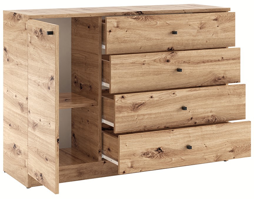 Komoda „Evi I“ – elegantiškas ir funkcionalus baldas, kuris dėl savo paprastumo ir universalaus dizaino puikiai dera prie daugelio interjerų. Paprasta forma puikiai dera prie modernaus, minimalistinio interjero, tačiau puikiai atrodo ir tradicinėje aplinkoje, suteikdama modernumo.