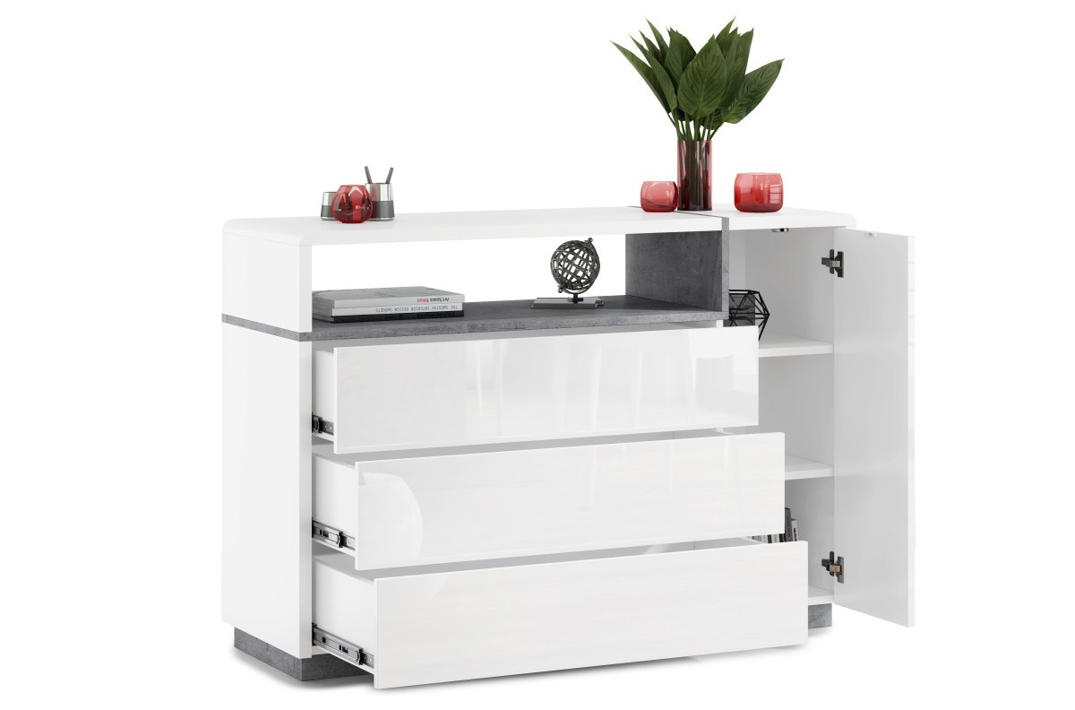 FOLK K-135 komoda, blizgi/matinė balta + „Millenium Concrete“ – MODERNI SVETAINEI