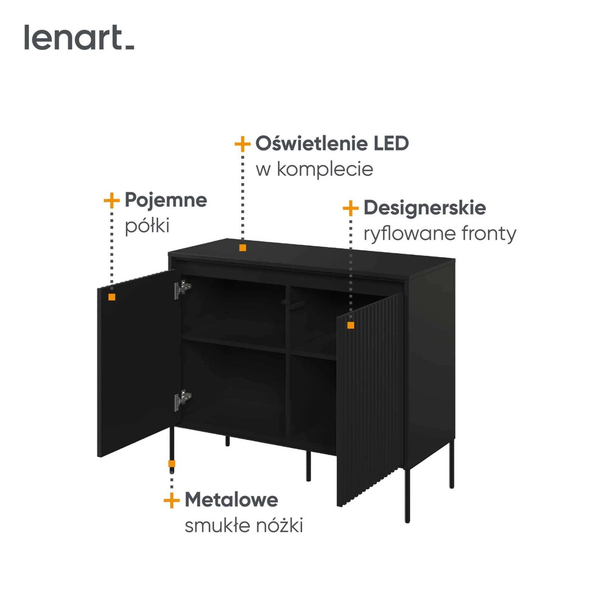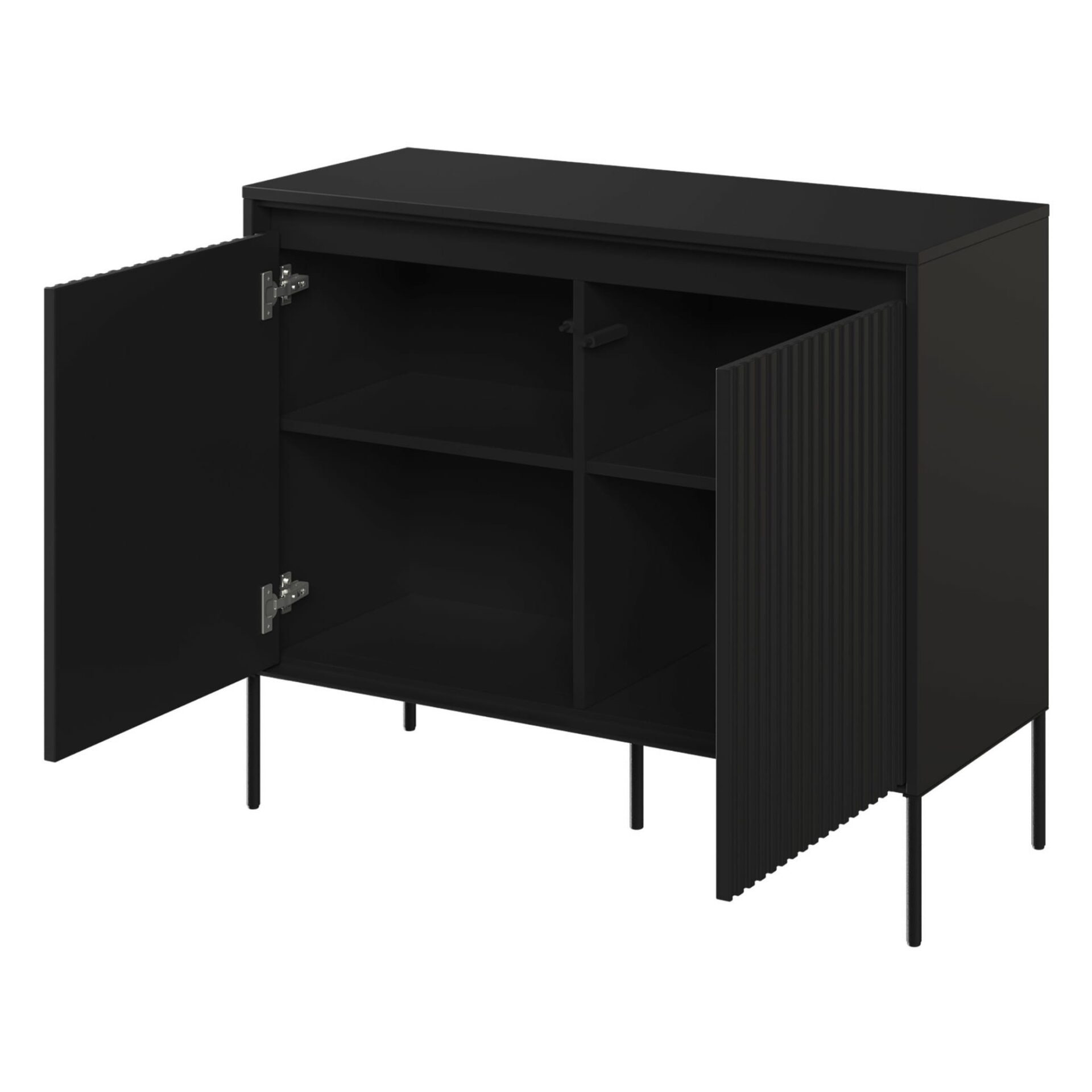 Būkite pirmas aprašęs “TREND 02 frezuota komoda, juoda/juodos kojelės”