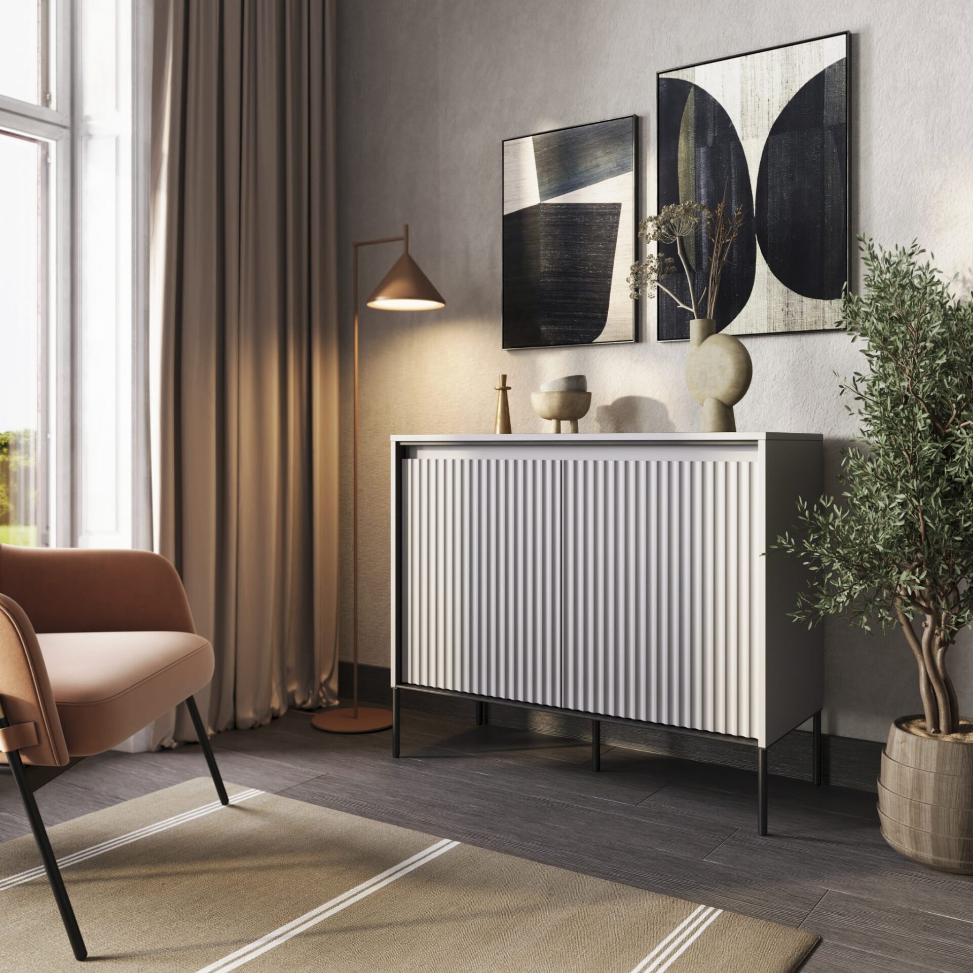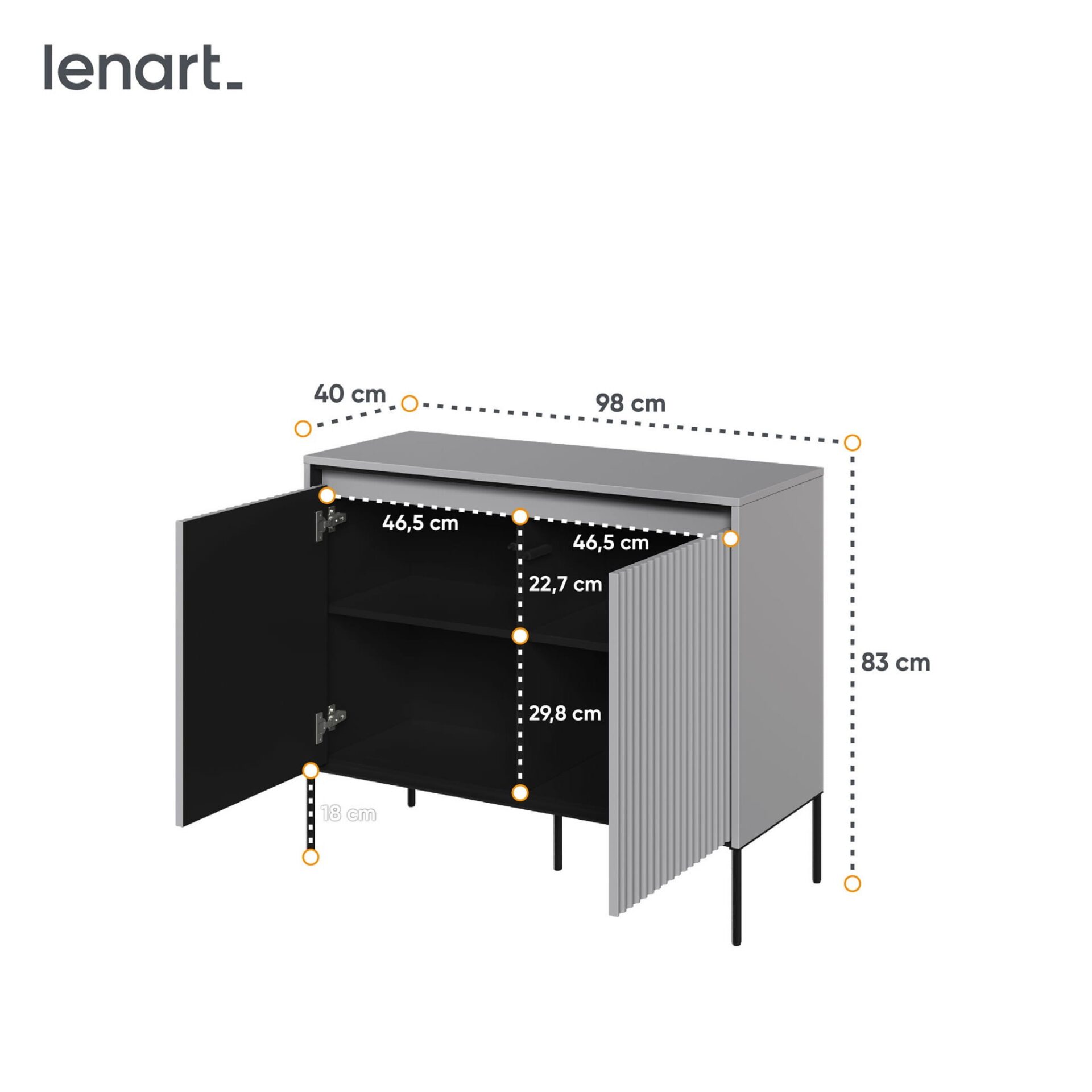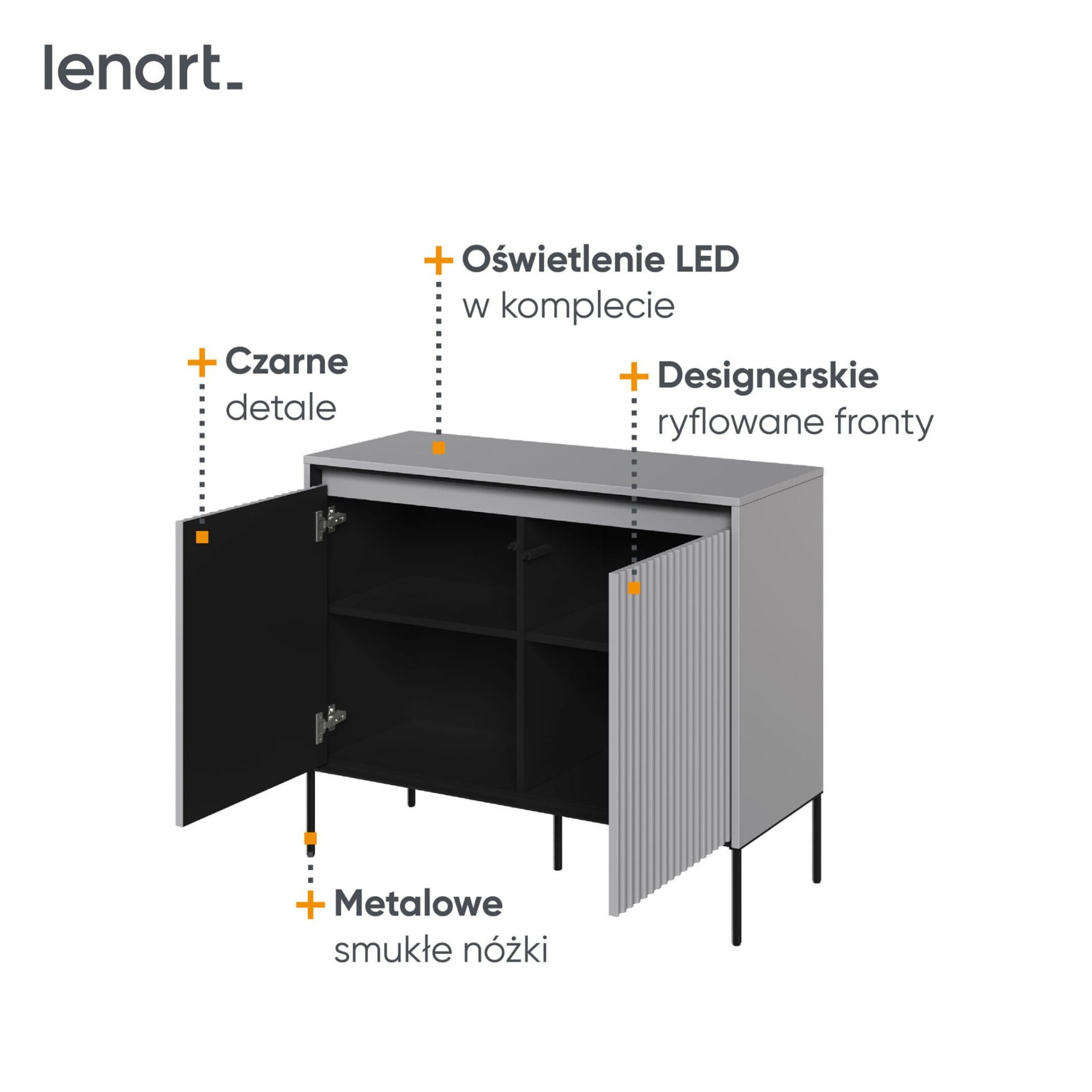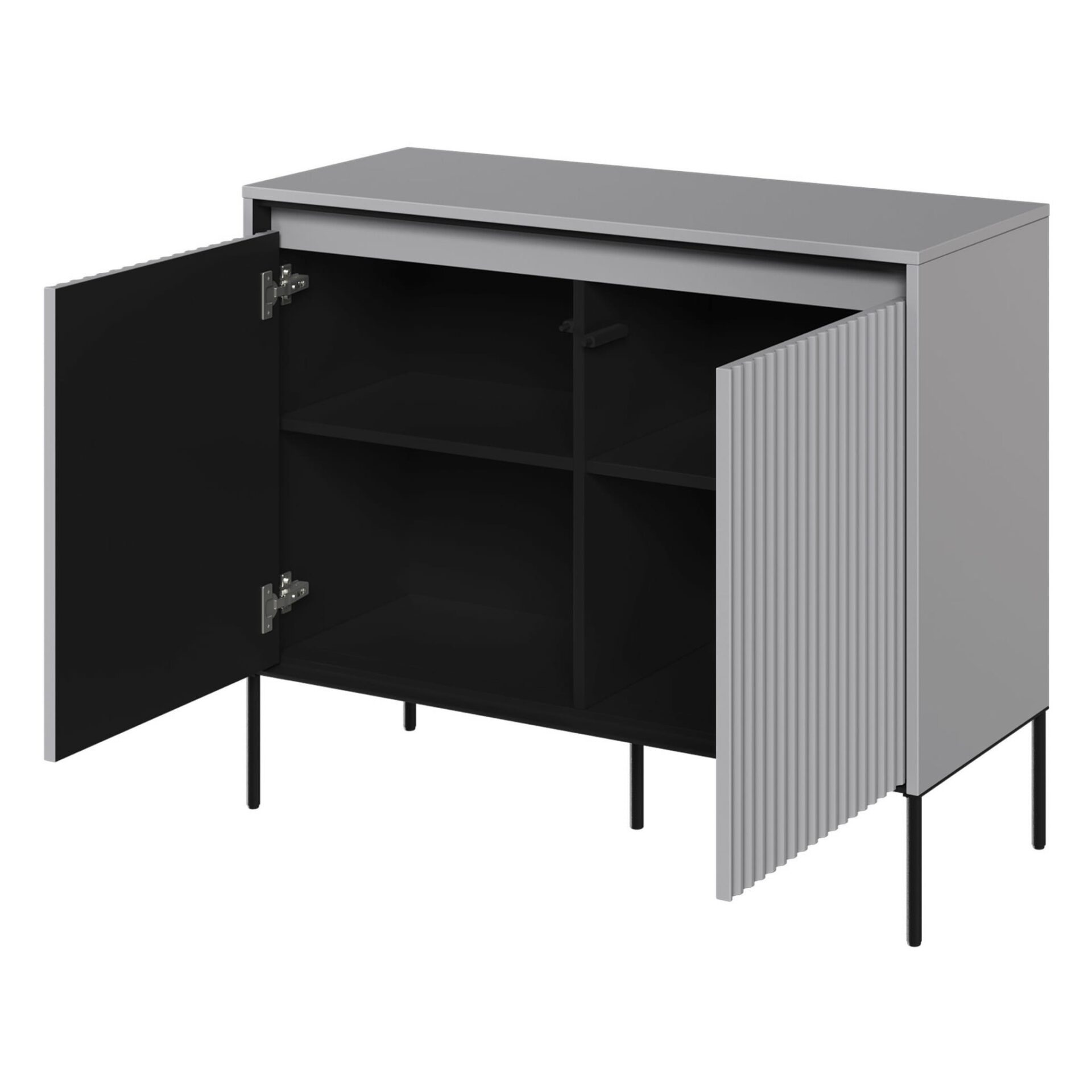 Būkite pirmas aprašęs “TREND 02 frezuota komoda pilkos/juodos kojelės”