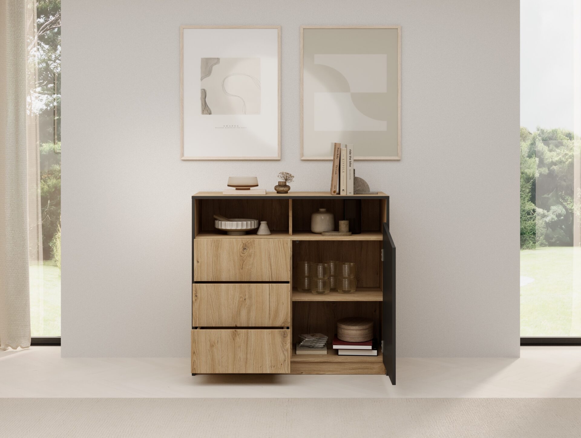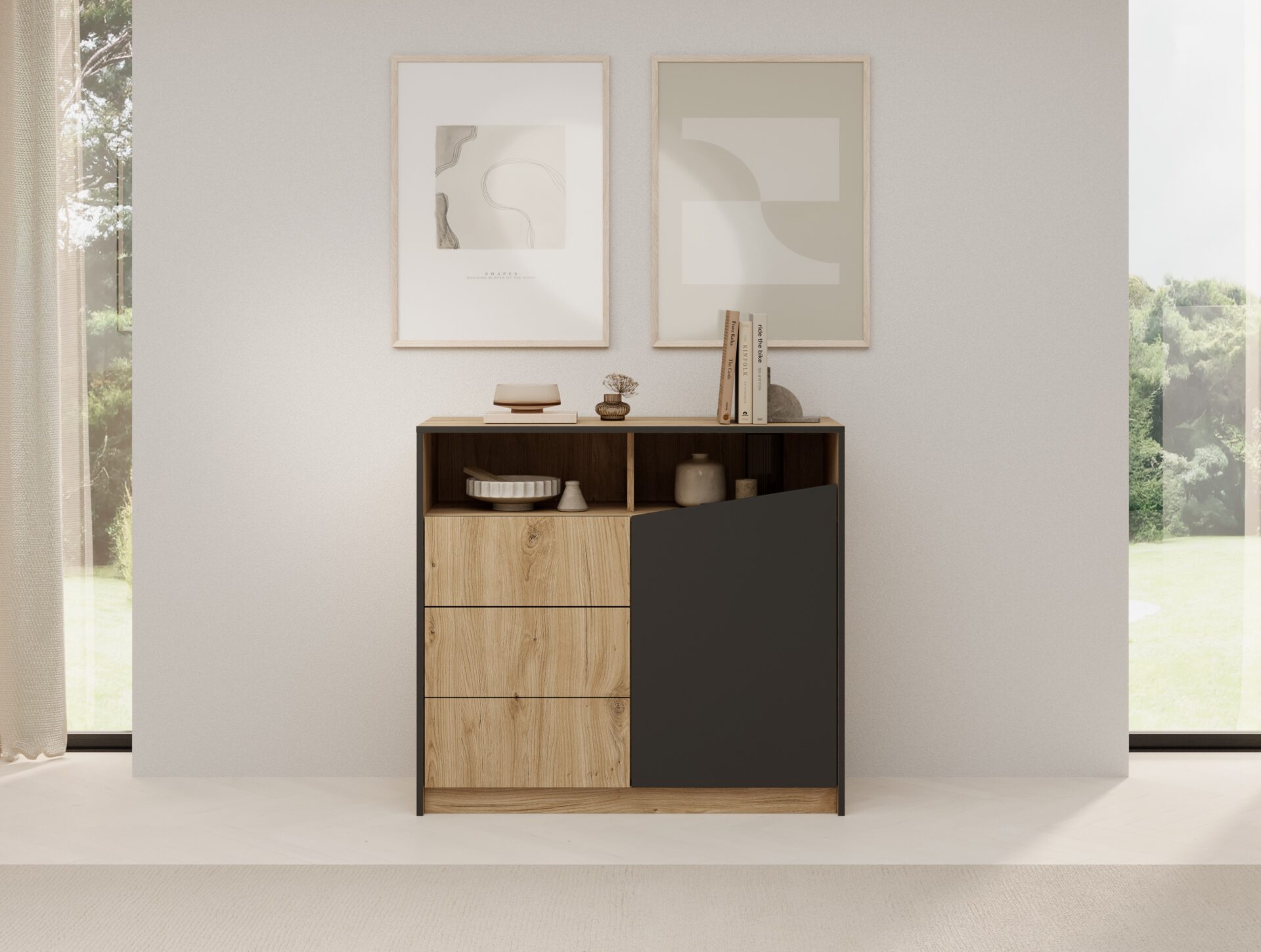 Atsono ąžuolo/juodos spalvos komoda I ADRK