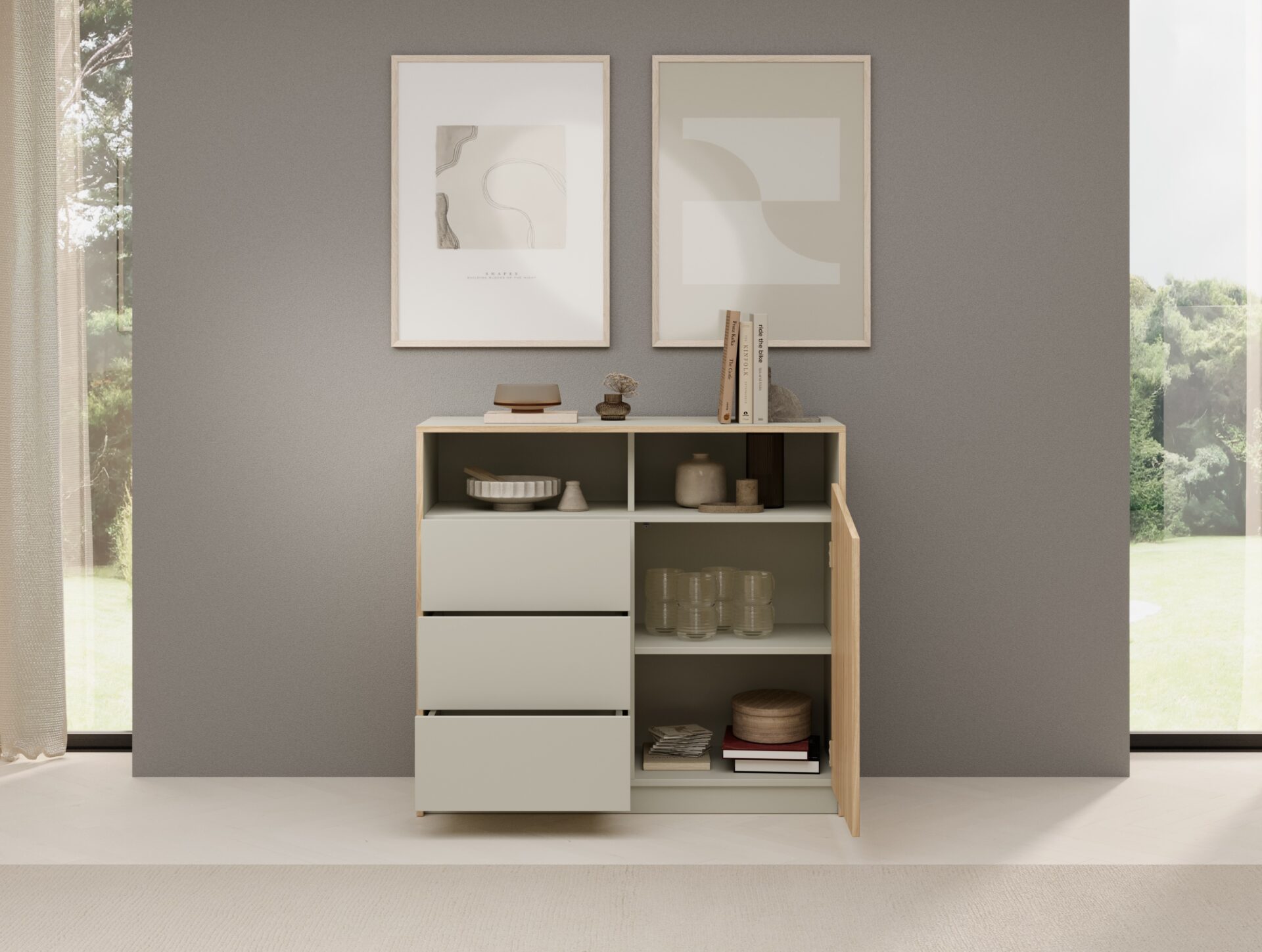Atson I komoda, ąžuolo/pilkos smėlio spalvos, ADRK