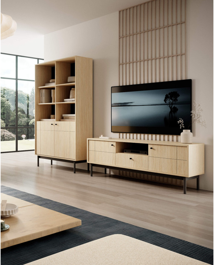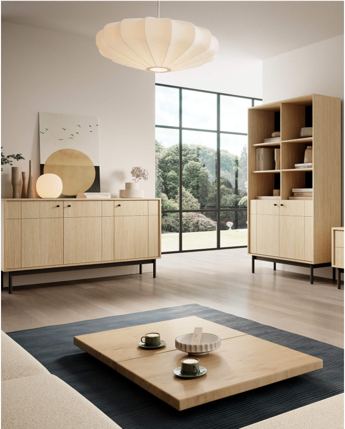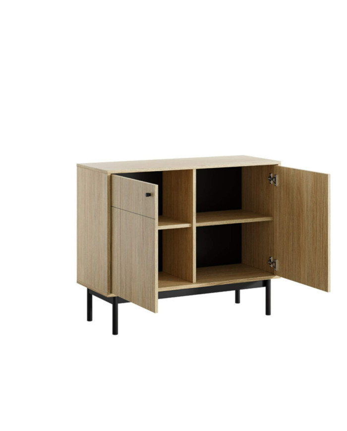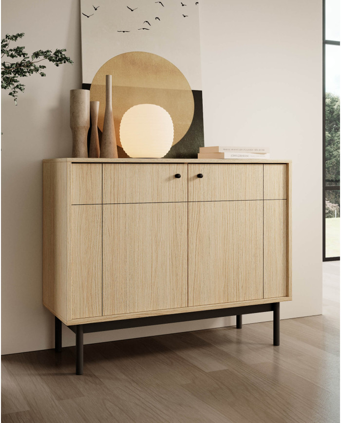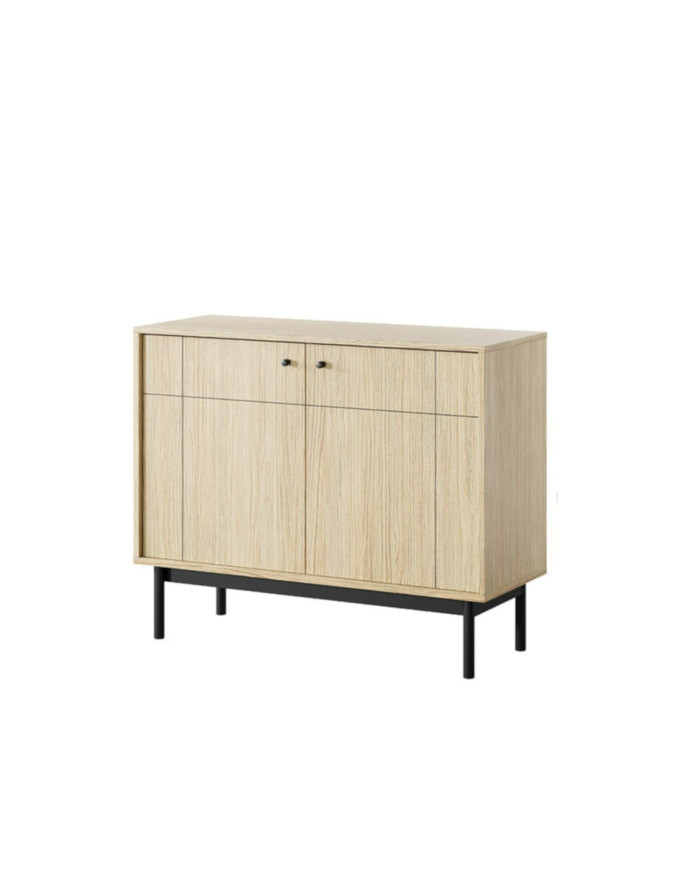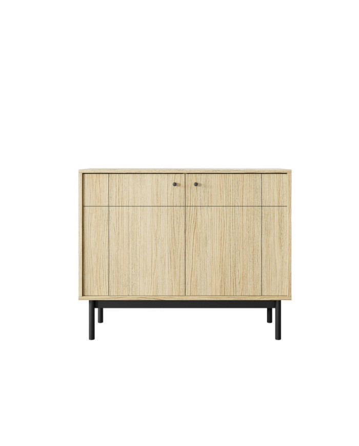 Japandi K-104 komoda, dviejų durų, Linea ąžuolo/juodos spalvos