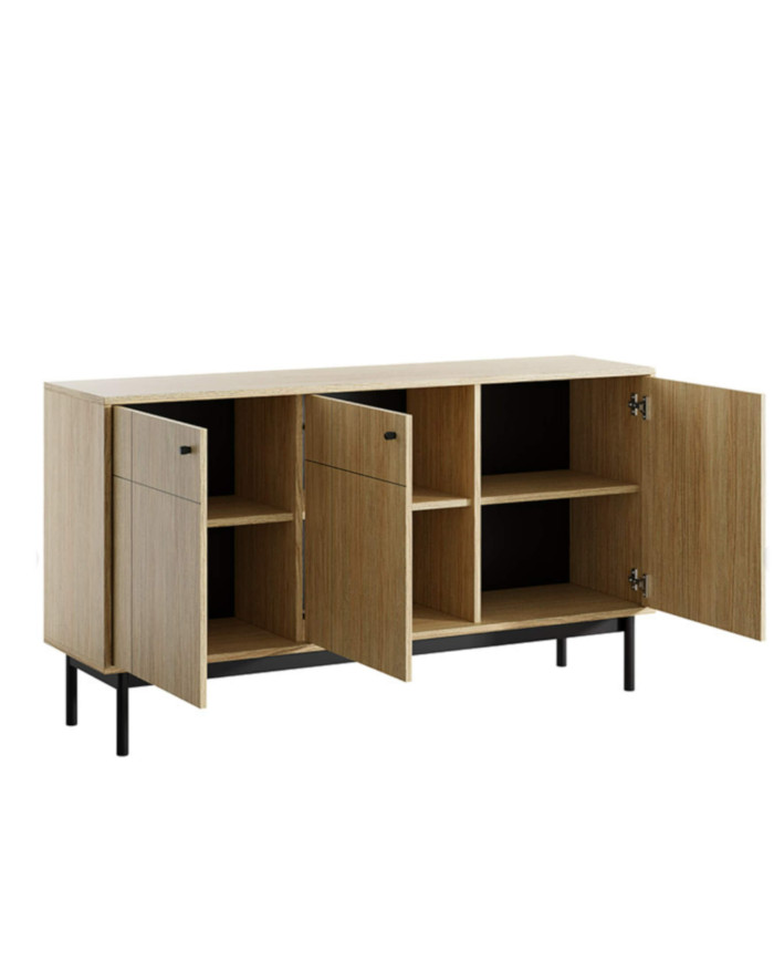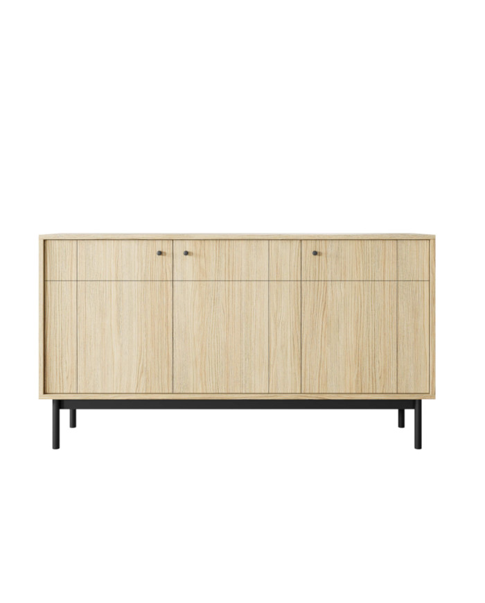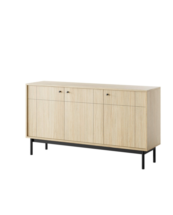 Japandi K-154 komoda, trijų durų, Linea ąžuolo/juodos spalvos