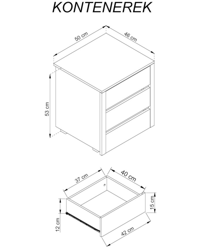 Ši spintelė, skirta drabužinei ar rašomajam stalui, turi tris erdvius stalčius ir yra pagaminta iš matinės baltos laminuotos baldų plokštės. Ji pasižymi padidintu atsparumu įbrėžimams. Spintelė pristatoma plokščiai supakuota ir pateikiamos aiškios surinkimo instrukcijos.