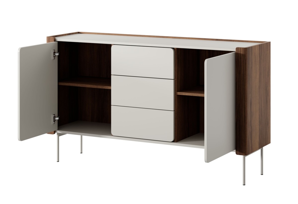 Priekinės dalys: 16 mm laminuota plokštė + 0,5 mm ABS kraštas + apvali MDF dekoratyvinė juostelė