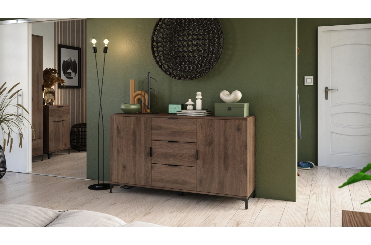 LANA K-100 Elegantiška riešutmedžio komoda – 4 durų grindų spintelė