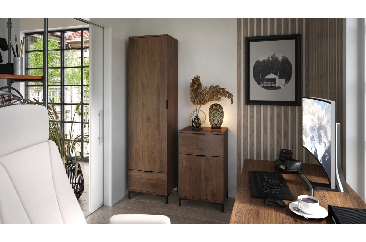 PLOTIS 100 cm, GYLIS 40 cm, AUKŠTIS 110 cm, MEDŽIAGOS Medžio drožlių plokštė + milteliniu būdu dažytas plienas, PAVIRŠIUS Matinis, STILIUS Loft, SVORIS SU PAKUOTE 53 kg, KITA Gaminys skirtas savarankiškam surinkimui su pateiktomis instrukcijomis
