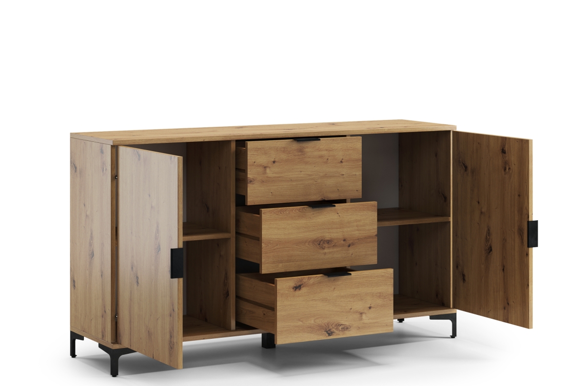 LANA K-150S Artisan Oak komoda – 2 durų pastatoma spintelė su stalčiais