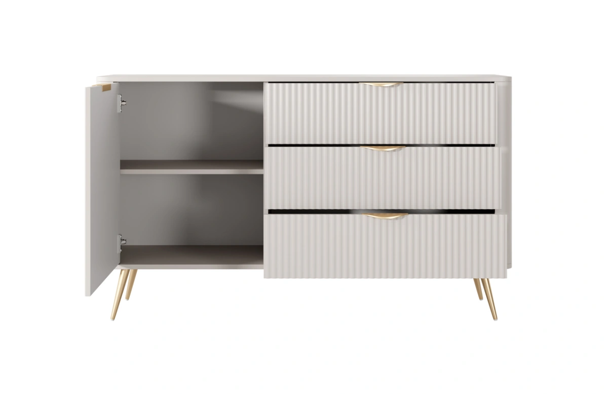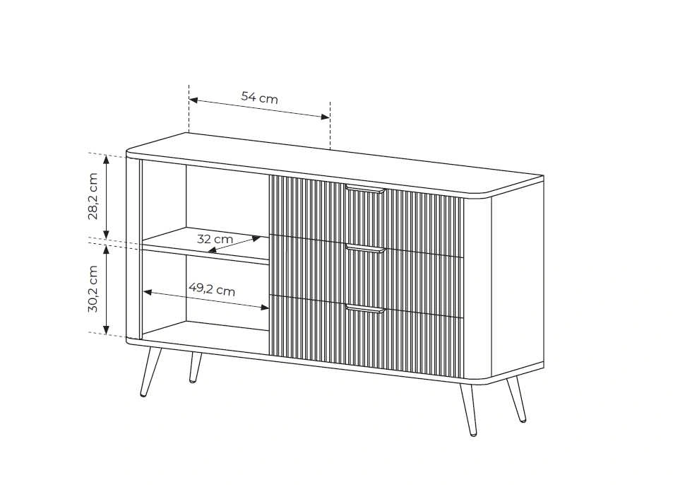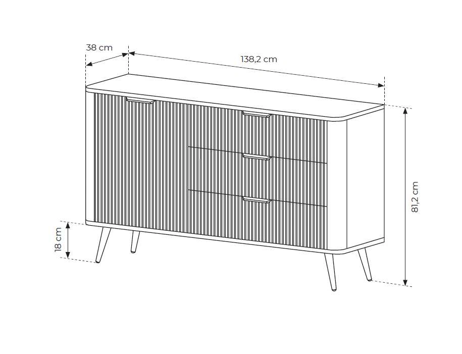 Korpusas: 16 mm E05 laminuota medžio drožlių plokštė + lenkta MDF juostelė