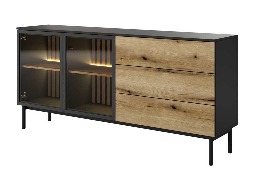 Lofto stiliaus stiklinė komoda su stalčiais ir apšvietimu Lang 180