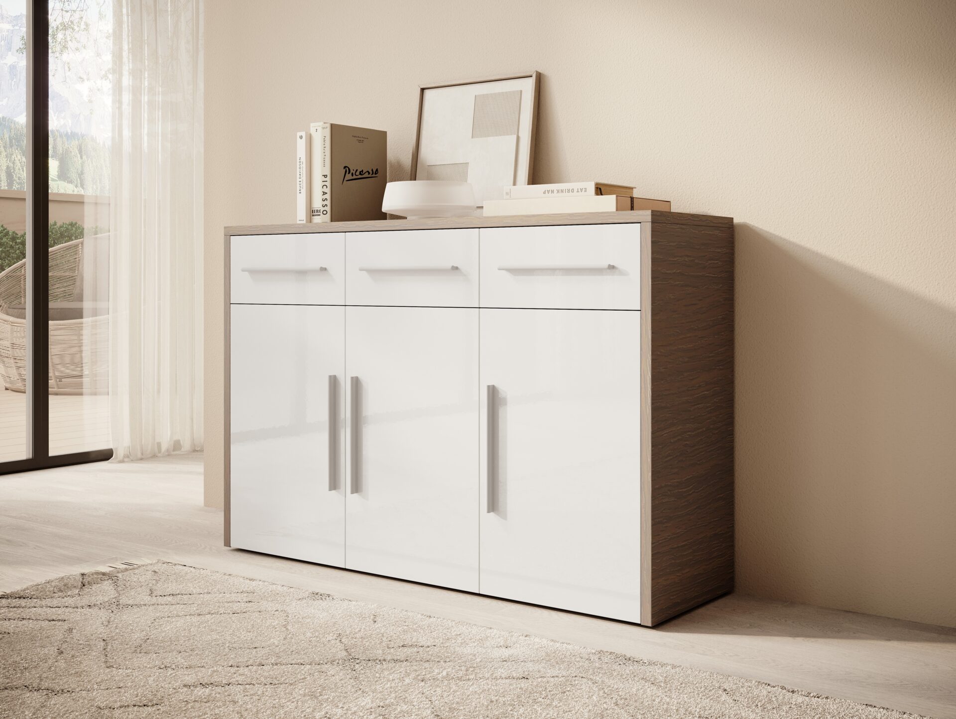 MARDEN komoda, blizgi balta / tamsus Mont Blanc, ADRK