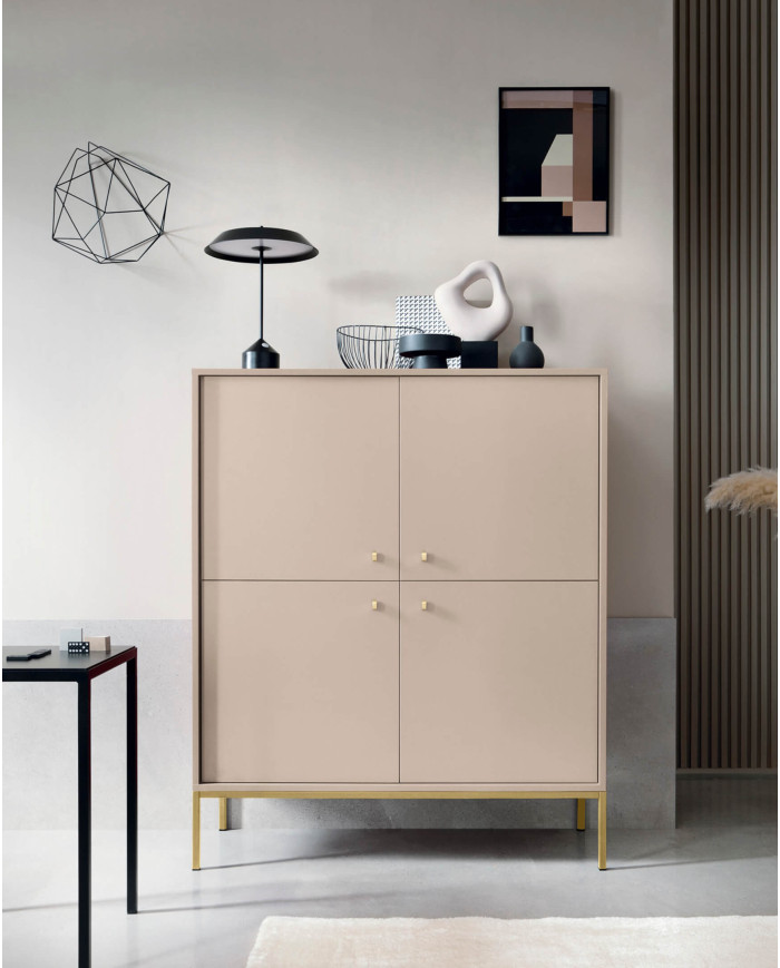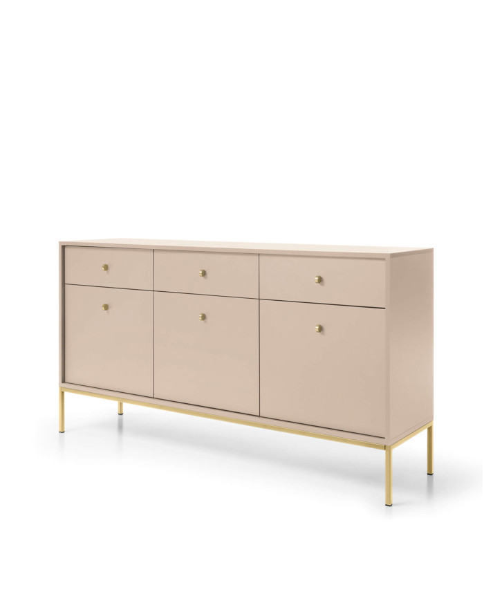 Mono MKSZ154 komoda, durelėmis, stalčiais, smėlio spalvos / auksiniu rėmu