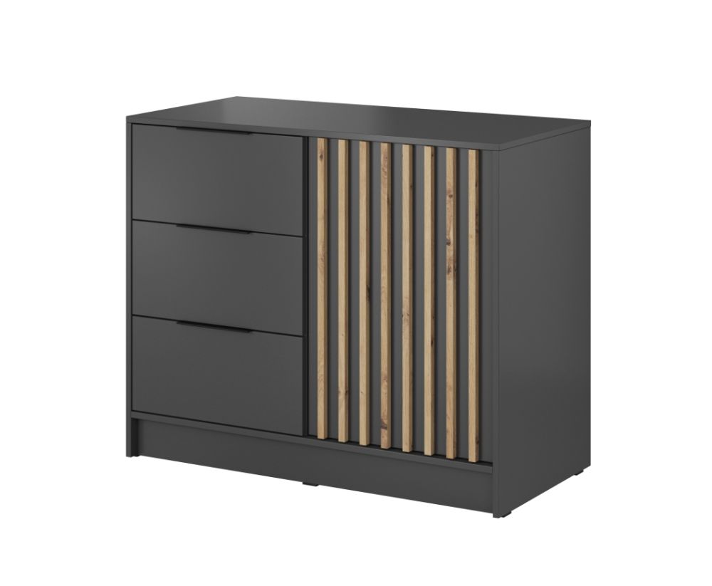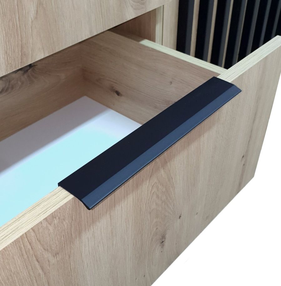 Komoda „Nelly“ pagaminta iš aukštos kokybės 16 mm storio laminuotos plokštės su ABS faneruotomis briaunomis.