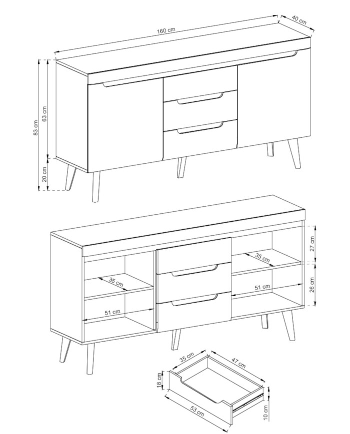 „Nordi NKSZ160“ komoda su durelėmis ir stalčiais, pasižyminti moderniu charakteriu ir skandinaviško dizaino elementais, puikiai tiks šiuolaikiškuose svetainėse ir poilsio kambariuose. Komplektą sudaro dvejos varstomos durys, už kurių yra horizontalios lentynos, ir trys praktiški stalčiai smulkiems daiktams, papuošalams ir niekučiams susidėti. Apatinėje dalyje yra aukštos (20 cm) medinės kojelės, suteikiančios lengvumo ir originalumo. Šios kojelės leidžia naudoti valymo robotus valyti po spintele. Indauja pagaminta iš laminuotos baldų plokštės, pasižyminčios padidintu atsparumu įbrėžimams, ir patvariais MDF fasadais. Spintelė priklauso to paties pavadinimo kolekcijai, kurią sudaro komodos, spinta, stalas, lentyna, televizoriaus staliukai ir kavos staliukas. Komoda pristatoma supakuota su lengvai suprantamomis surinkimo instrukcijomis.