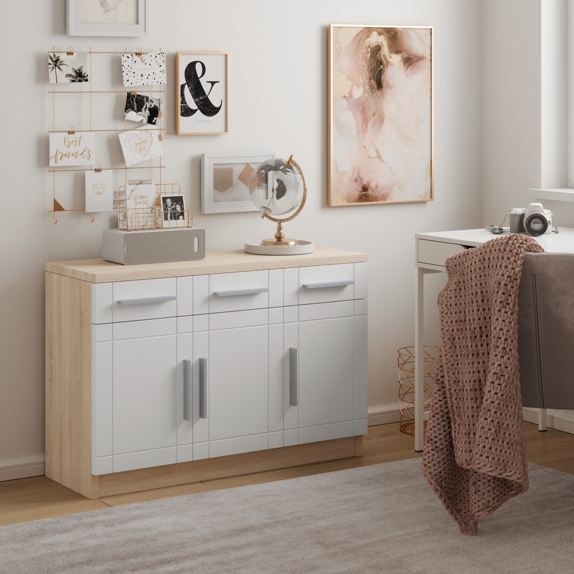 Intriguojančio dizaino PARVIN komoda puikiai tiks jūsų svetainei, miegamajam ar prieškambariui. Praktiška ir funkcionali. Trys erdvūs stalčiai leidžia laikyti smulkius daiktus ar dokumentus, o spintelės su lentyna viduje suteikia papildomos vietos daiktams susidėti.