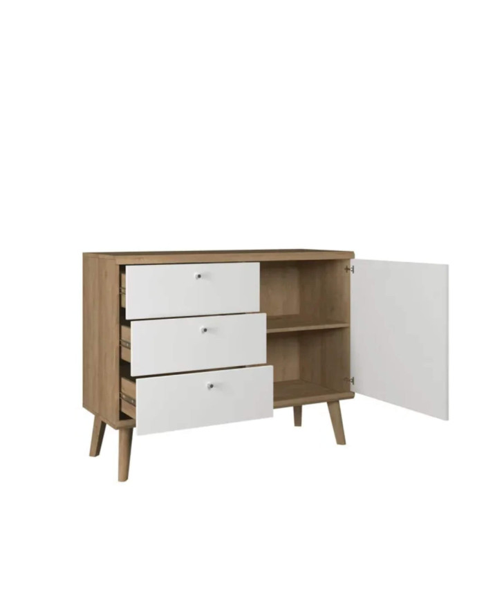 Primo PKSZ107 komoda, durelėmis, Riviera Oak/White