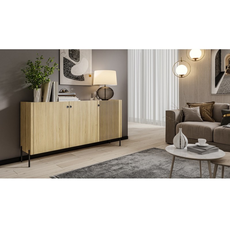 – Standartinė baldų spalva: nedažytas ąžuolas arba matinė juoda ant medžio