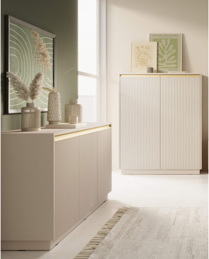 ROYAL K-154 komoda su stalčiais, trijų durų, smėlio/aukso spalvos