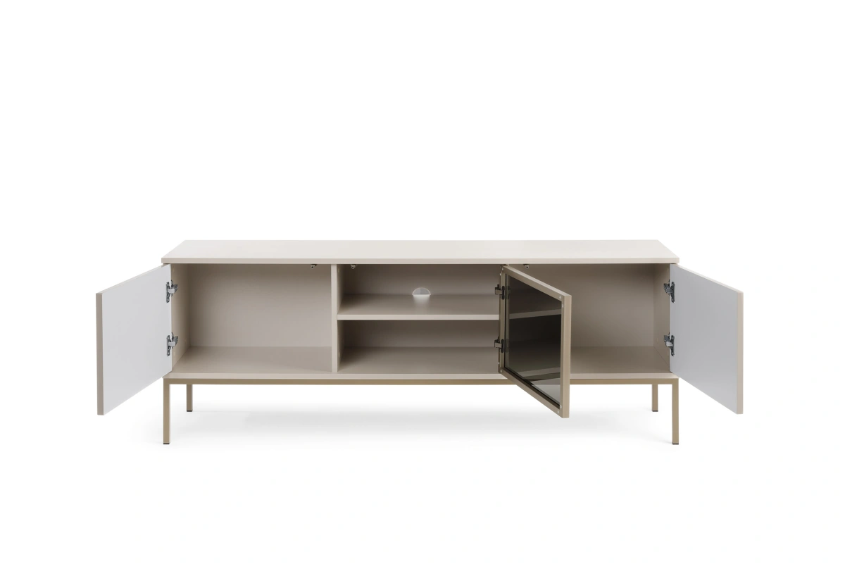 „Sento RTV154“ televizoriaus spintelė – turi tris spinteles – lentyną už fasado, vieną stiklinę priekinę dalį, komplekte yra apšvietimas.