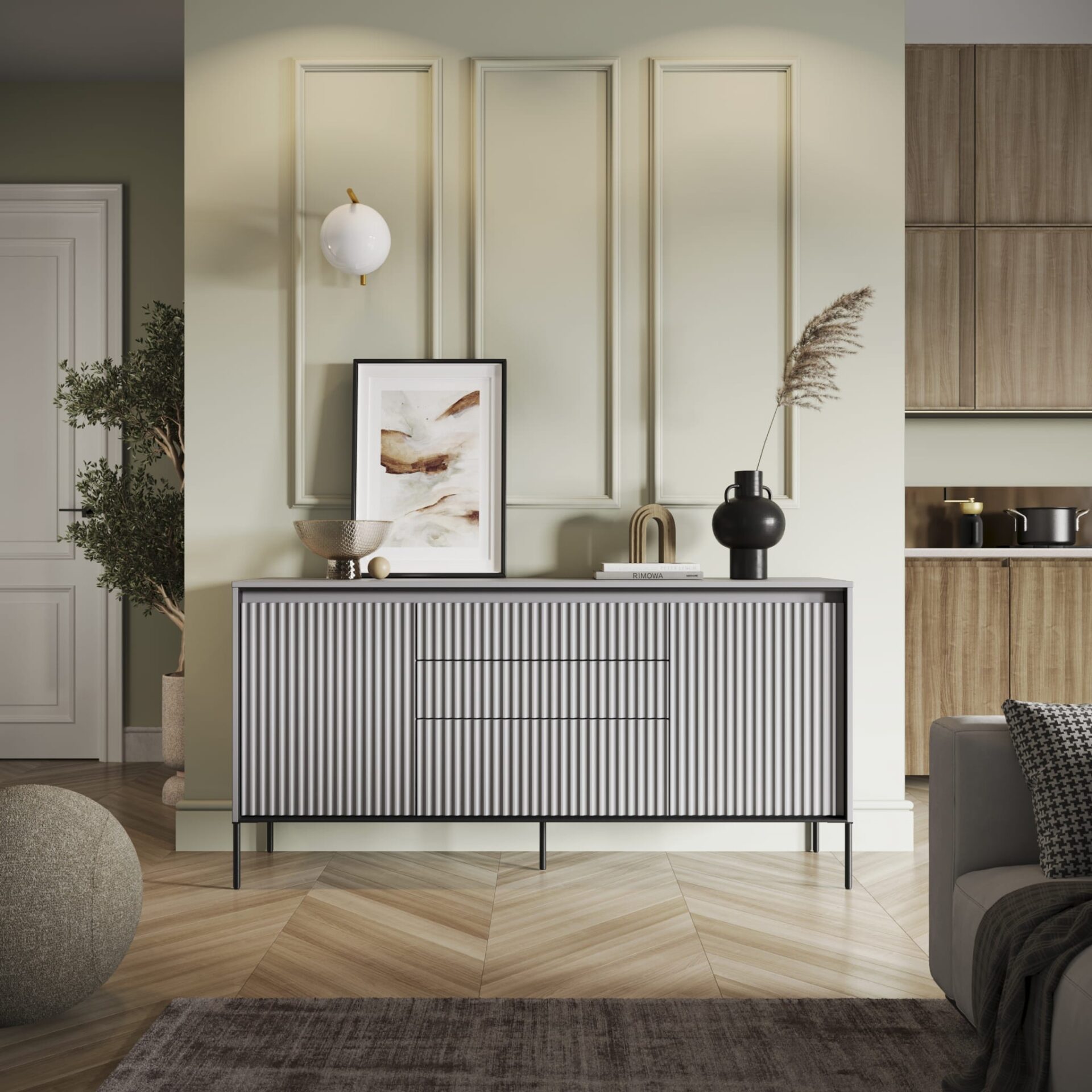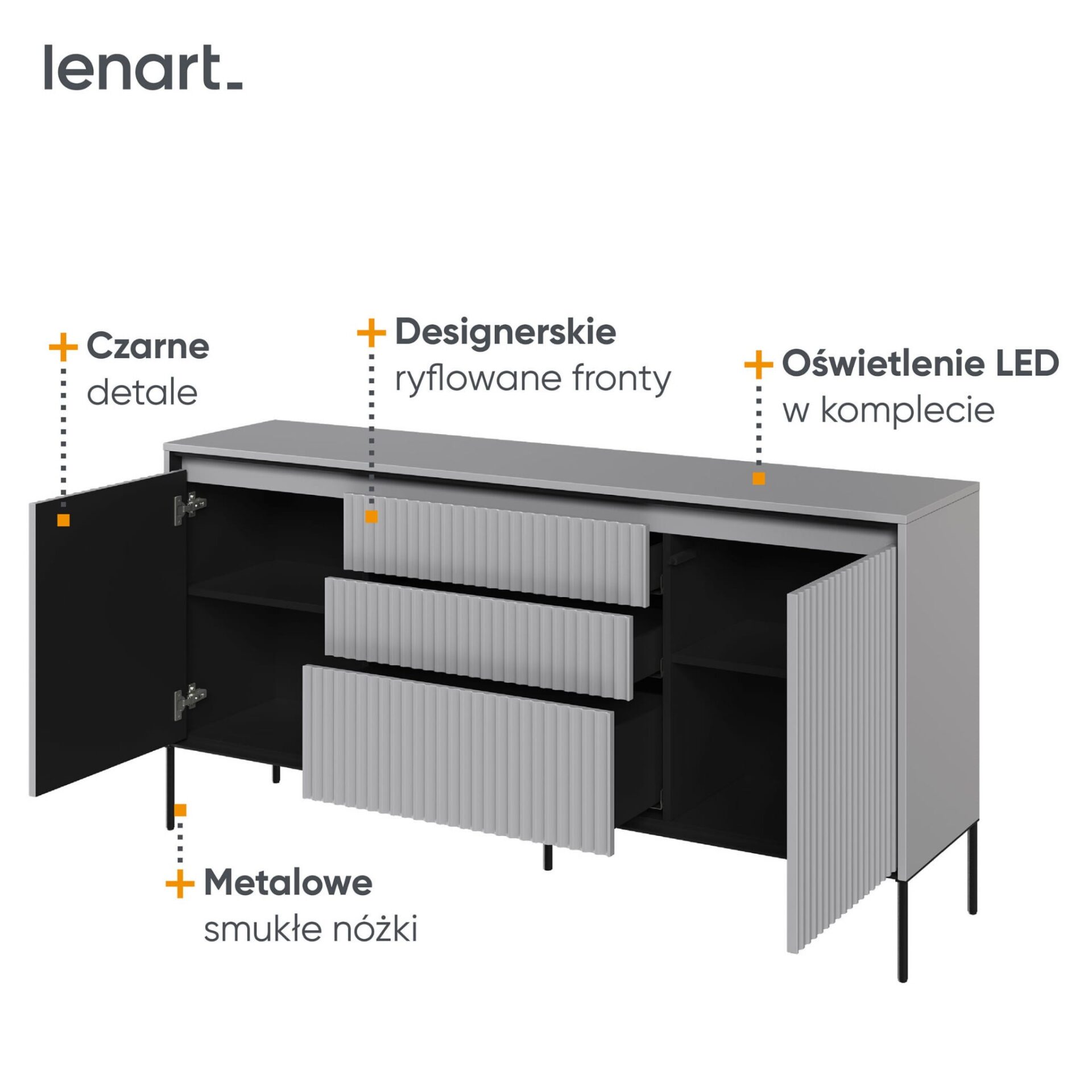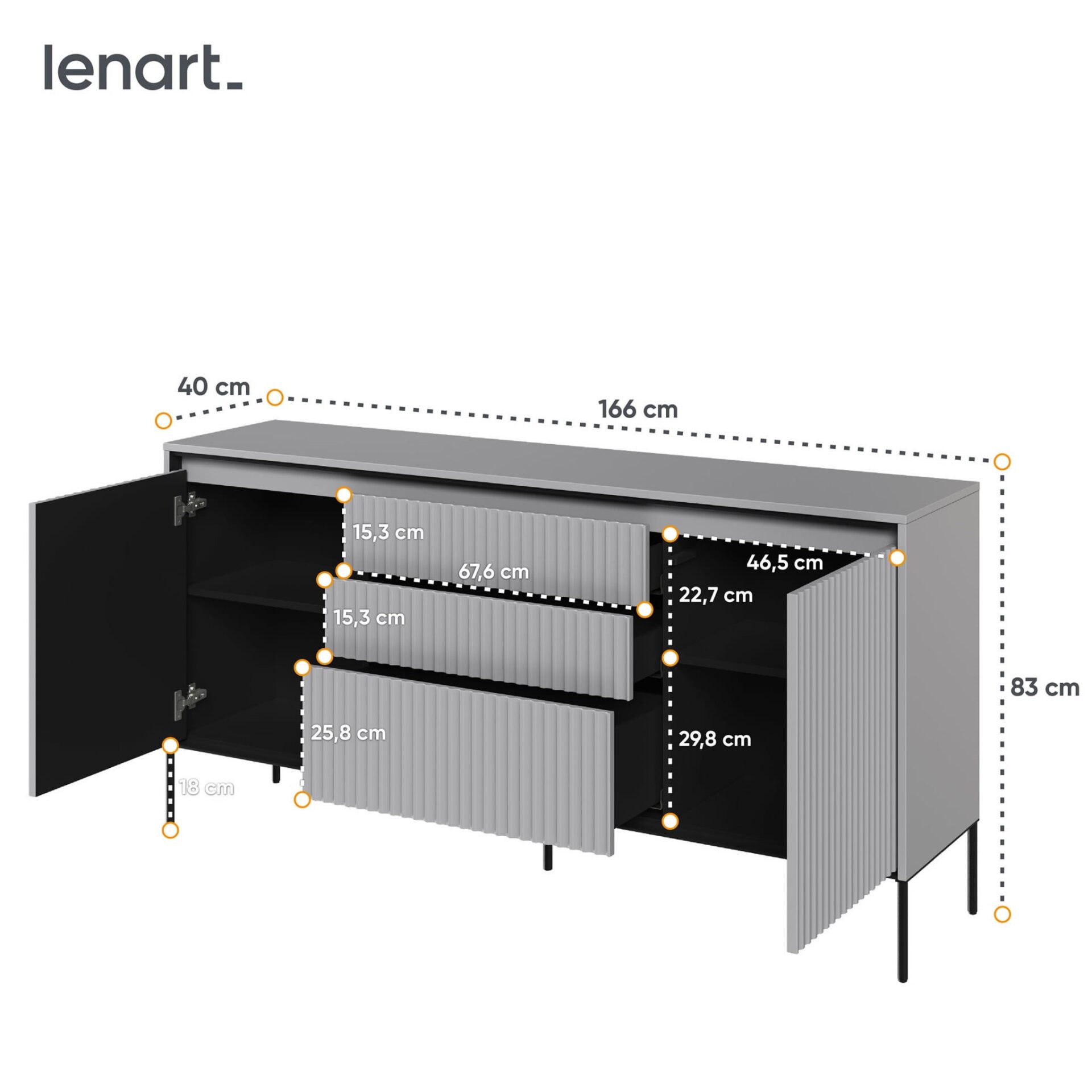 Priekinė dalis: pusapvalis frezavimas; MDF plokštė; 18 mm