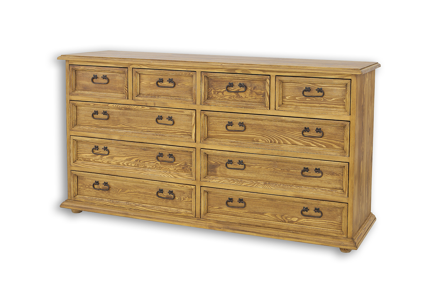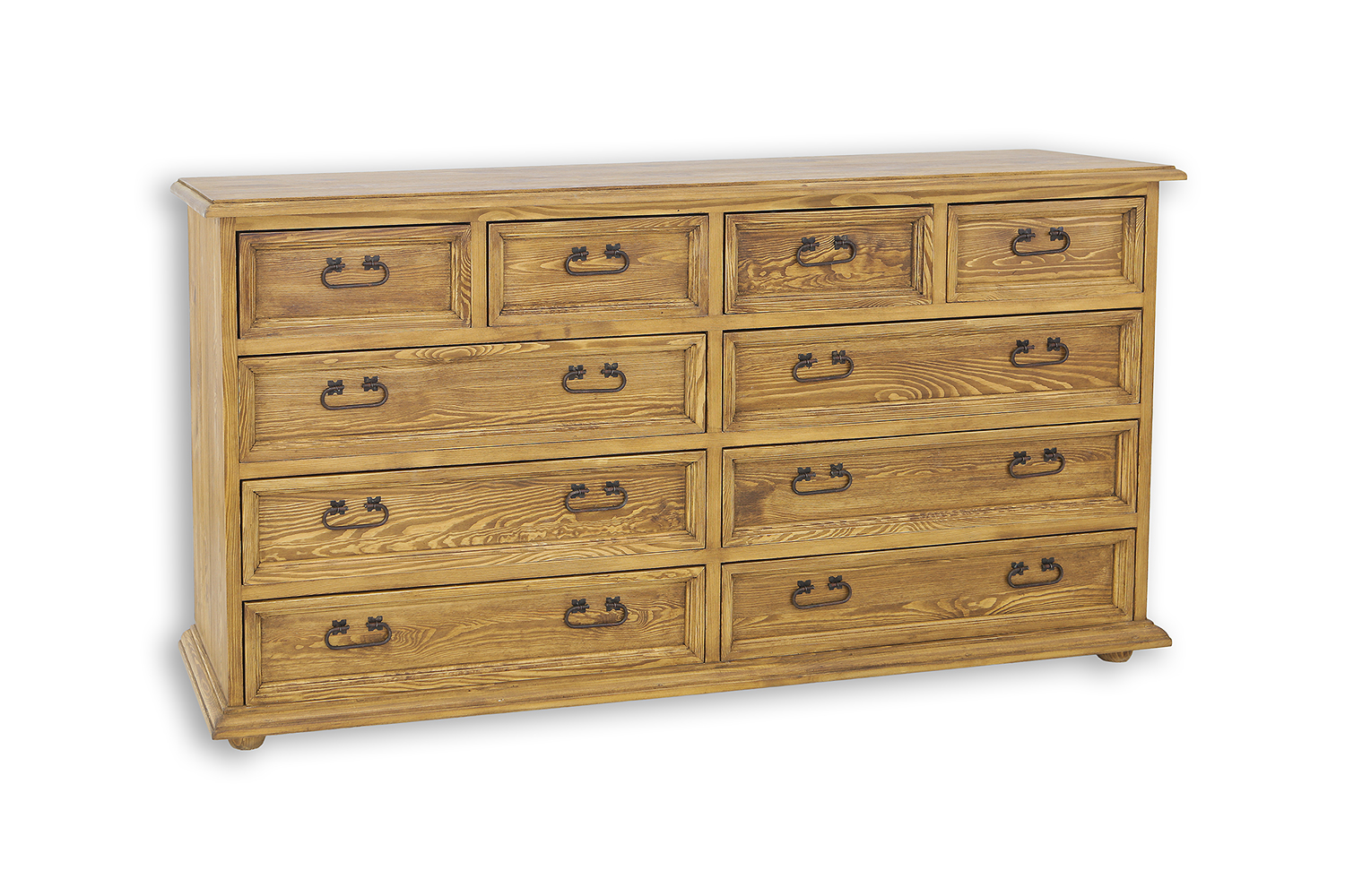 Vaškuota komoda KD708 SLIM, sukurta kaimišku stiliumi, pagaminta iš tvirtos pušies medienos. Ją sudaro keturi maži stalčiai, esantys viršutinėje spintelės dalyje, ir šeši didesni stalčiai, ištraukiami mediniais bėgeliais. Naudojamos rankų darbo metalinės rankenos ir sendinto stiliaus vyriai. Komoda yra patvarios ir tvirtos konstrukcijos. Ji puikiai tinka miegamiesiems ir persirengimo kambariams. Ji suteiks bet kokiam interjerui unikalią atmosferą, kupiną šilumos ir jaukumo. Jos funkcionalumas labai palengvins daiktų laikymą.