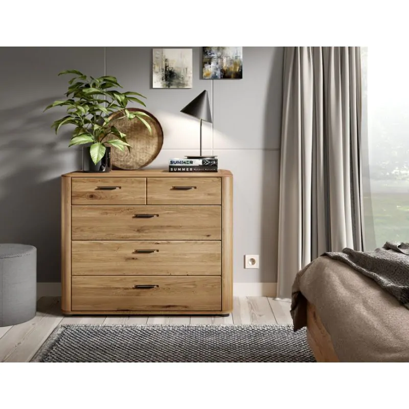 Komoda MONA.094.14 su stalčiais sujungia natūralų ąžuolo masyvo grožį su moderniu funkcionalumu. Sukurta miegamiesiems, kur svarbi ir estetika, ir praktiškumas, tai elegantiškas ir patvarus interjero dizaino elementas.