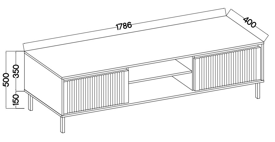 „Osaka 2S“ televizoriaus spintelė – su stabiliu stalviršiu, dviem skyriais ir stalčiais.