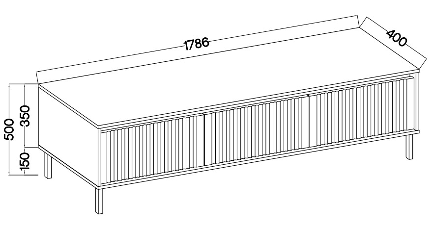 „Osaka 3S“ televizoriaus spintelė – su stabiliu stalviršiu ir stalčiais.