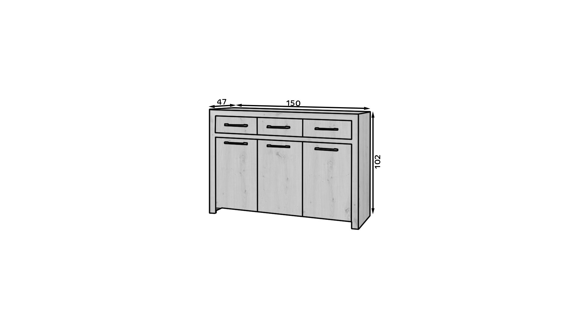 Trijų durų komoda iš JANEZ kolekcijos – idealus pasirinkimas svetainei, miegamajam ar prieškambariui. Tai puiki vieta smulkiems daiktams laikyti. Apdaila dirbtinio ąžuolo medienos, JANEZ komoda pagyvins kambarį ir suteiks stiliaus bei elegancijos. Raginame susipažinti su kitais JANEZ kolekcijos gaminiais, kurie leis jums skoningai ir funkcionaliai įrengti savo interjerą.