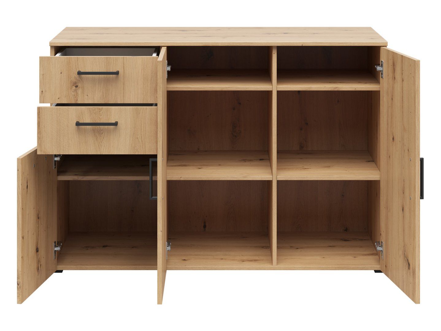 „MultiDo“ – funkcionali komoda kiekvienam kambariui. 3D2S/120 cm „MultiDo“ komoda yra modernus ir praktiškas baldas, puikiai tiksiantis įvairiuose interjeruose. Dėl minimalistinio dizaino ir trijų spalvų (baltos, dirbtinio ąžuolo, grafito) ją lengvai priderinsite prie svetainės, miegamojo, darbo kambario, prieškambario, vonios kambario, biuro ar jaunimo kambario. „MultiDo“ komoda derina estetiką ir funkcionalumą, leisdama daiktus laikyti tvarkingai ir stilingai. Ypatybės: