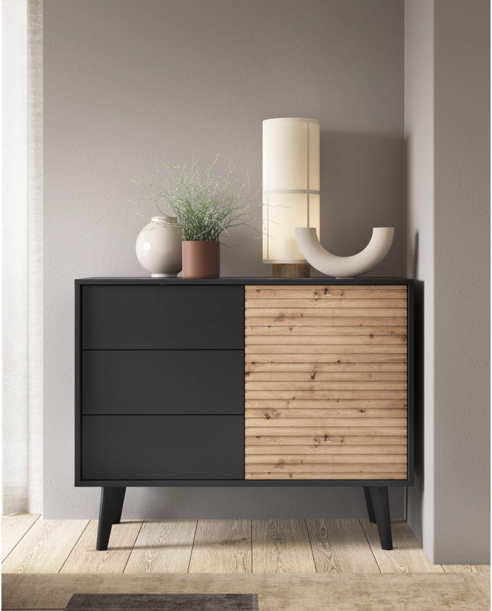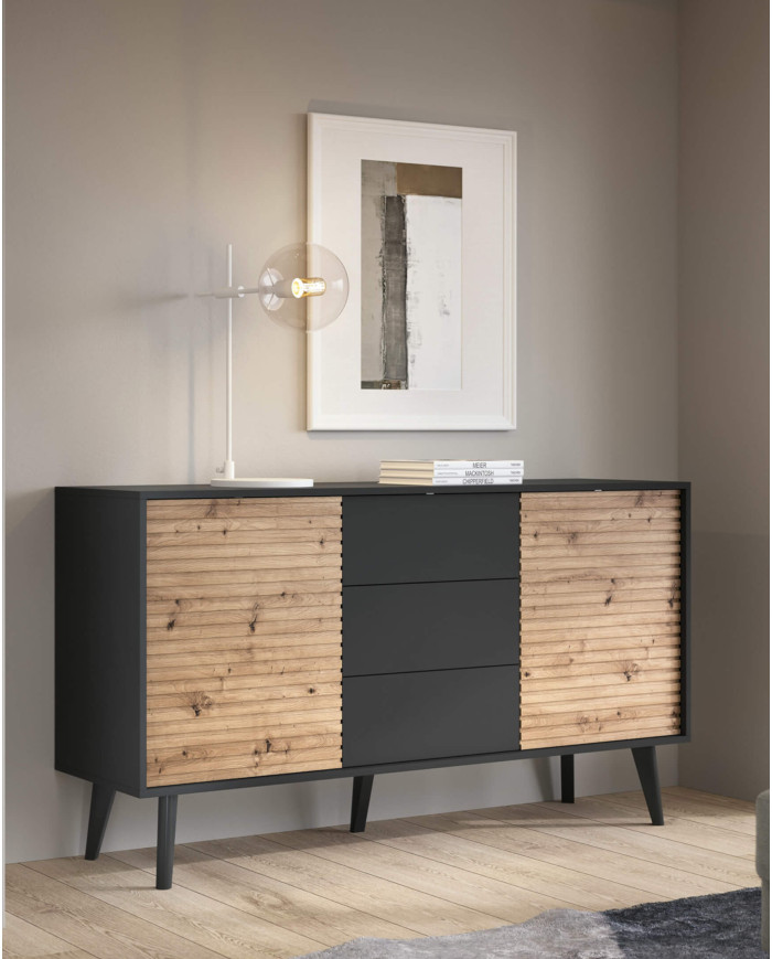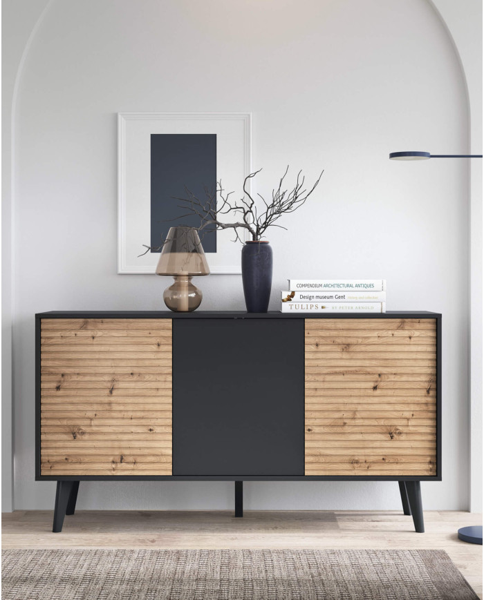 Willow K154 komoda, trijų durų, Artisan ąžuolo/juodos spalvos