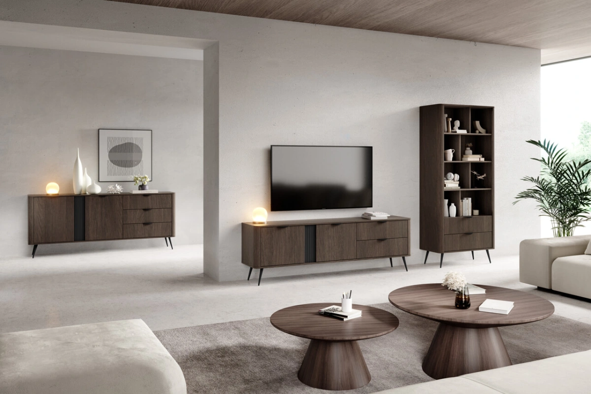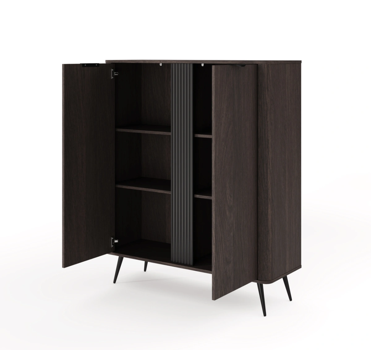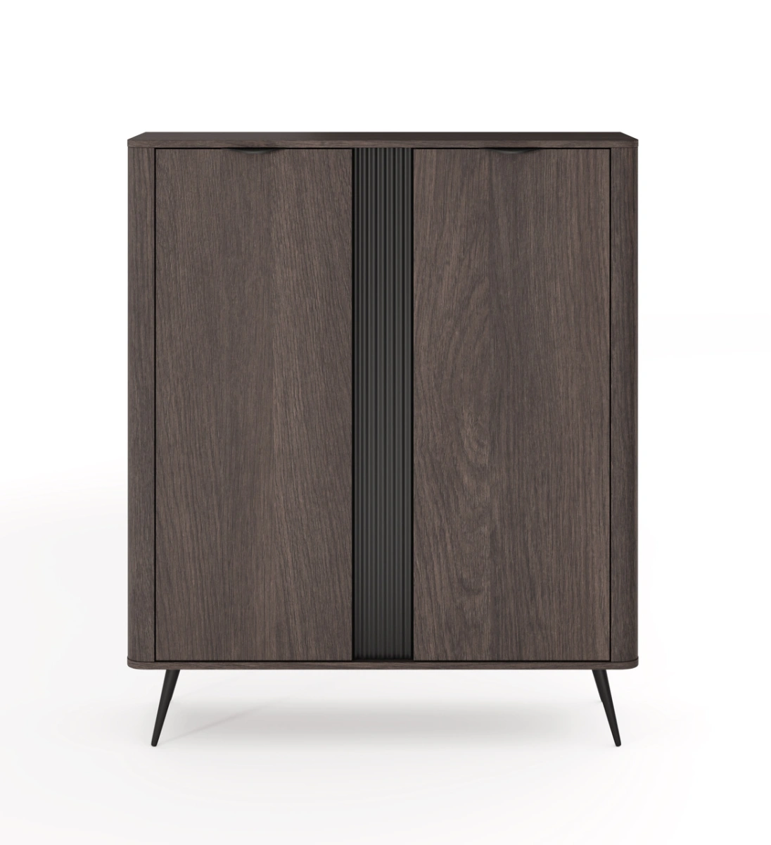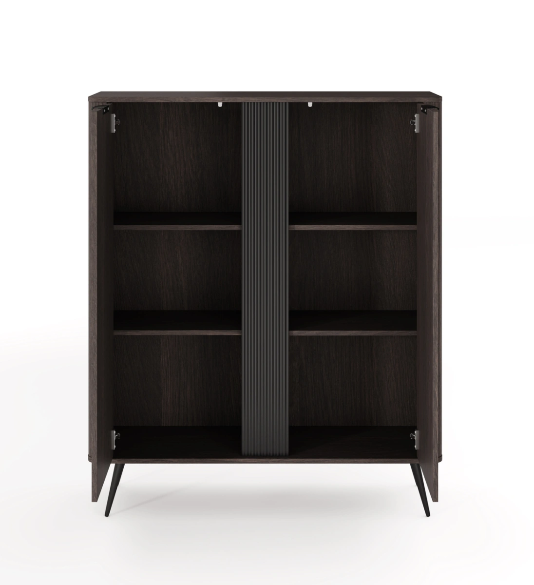 Korpusas: E05 laminuota medžio drožlių plokštė, 16 mm + apvali MDF juostelė šonuose + grioveliais išdėliotas 18 mm MDF įdėklas