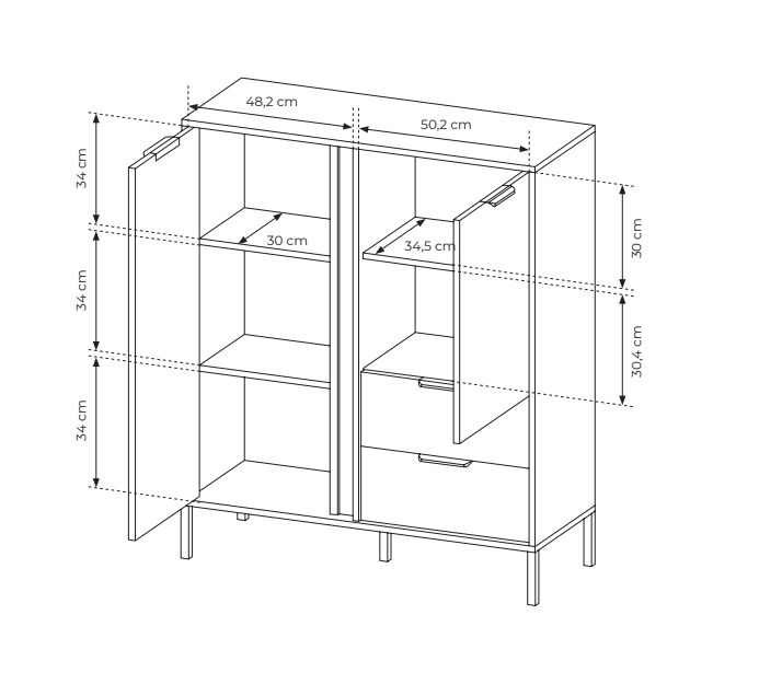 Lars 2D2S komoda – turi dvi spinteles ir du stalčius.