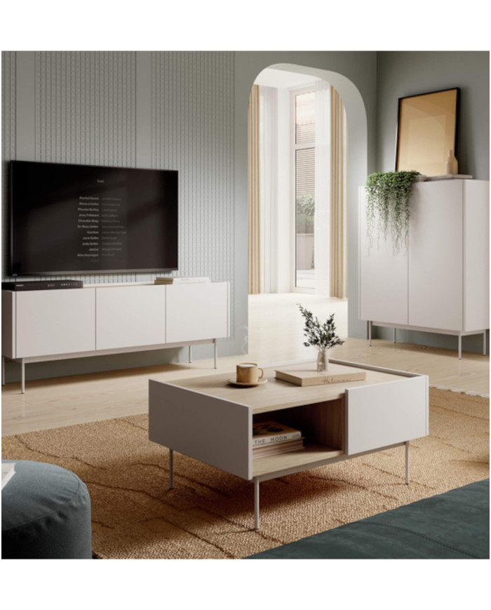Erdvi aukšta „Color KD97“ komoda pasižymi derančia „Cashmere“ spalvų gama priekyje ir korpuse, o viršutinė ir vidinė dalys – „Linea Oak“ ąžuolo apdaila. Spintelė pagaminta iš įbrėžimams atsparios laminuotos plokštės, todėl yra atsparesnė įbrėžimams ir lengvai valoma. Komoda pasižymi erdve, padalinta dviem praktiškomis ir patogiomis lentynomis. Tai leidžia tvarkingai laikyti įvairius daiktus ir smulkius daiktus. Komplektas pasižymi patraukliu spalvų deriniu ir pristatomas paruoštas surinkimui, su aiškiomis instrukcijomis ir furnitūra.
