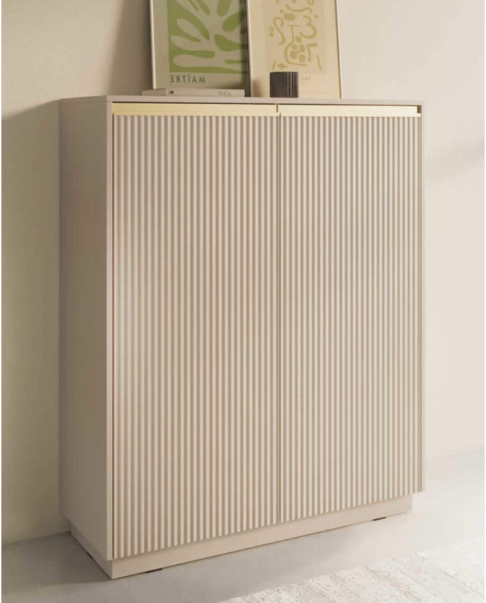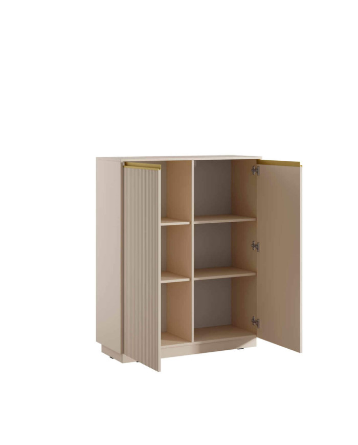 ROYAL KW-104 aukšta komoda su stalčiais, dviejų durų, smėlio/aukso spalvos