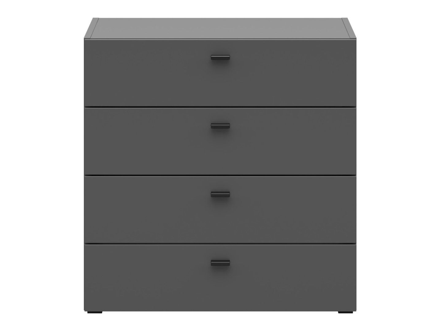 „System 64“ komoda su 4 stalčiais – modulinis interjeras pagal jūsų stilių. „System 64“ kolekcija – tai modernus modulinių baldų komplektas, kurio modulių plotis yra 64 cm, o aukštis – 32 arba 64 cm. Visų modulių bendras gylis yra 35 cm, todėl juos galima laisvai derinti ir sukurti komodas, televizoriaus spinteles, knygų lentynas, ištisas sienines spinteles ir biuro erdves dokumentams laikyti. Kiekvienas modulis gali būti laisvai pastatomas, kabinamas prie sienos arba sudedamas vienas ant kito. Galimos spalvos: balta, „Evoke Oak“ ir grafito, todėl konfigūracijos galimybės beveik neribotos. Vitrinoms galima įsigyti LED apšvietimą stiklinei lentynai arba visam interjerui. Be modulių, stalviršiai yra 64, 128 ir 192 cm ilgio, kad būtų lengva sukurti vientisas komodas, televizoriaus spinteles, indaujas ir aukštas stiklines spinteles. Funkcionalumas ir konfigūracija: „System 64“ komoda su 4 stalčiais – tai puikus funkcionalumo ir elegancijos derinys. 64 x 64 x 35 cm matmenys ir maksimali 21 kg apkrova leidžia lengvai rasti vietą bet kuriame kambaryje – svetainėje, miegamajame, prieškambaryje ar jaunimo kambaryje. Keturi erdvūs stalčiai užtikrina patogų drabužių, aksesuarų ir dokumentų laikymą, padeda palaikyti tvarką. Švelnaus uždarymo sistema užtikrina sklandų ir tylų uždarymą. Lygūs fasadai su juodomis metalinėmis rankenomis suteikia komodai modernų ir elegantišką vaizdą. Laminuotos plokštės konstrukcija yra patvari ir atspari kasdieniam naudojimui. Indauja gali būti naudojama atskirai arba derinama su kitais kolekcijos moduliais. Prie sienos tvirtinama konstrukcija suteikia lengvumo pojūtį ir daugiau laisvos grindų erdvės. Specialios savybės: Matmenys: 64 x 64 x 35 cm, Keturi erdvūs stalčiai su švelnia ir tylia uždarymo sistema, Maksimali apkrova: 21 kg, Juodos metalinės rankenos su moderniu dizainu, Tvirta laminuota plokštė, atspari kasdieniam naudojimui, Galimos spalvos: Balta, „Coast Evoke Oak“, Grafito, Laisvai pastatoma arba montuojama ant sienos, Suderinama su kitais „System 64“ moduliais, Papildomas LED apšvietimas vitrinose, Pridedami sieniniai tvirtinimo elementai, Spalva: Grafito. Santrauka: „System 64“ 4 stalčių indauja – puikus pasirinkimas tiems, kurie vertina tvarką, paprastumą ir modernų stilių. Dėl modulinio dizaino ir trijų spalvų ją lengvai priderinsite prie savo interjero dizaino, sukurdami harmoningą ir praktišką erdvę. Prekės kodas S707-KOM4S-GF