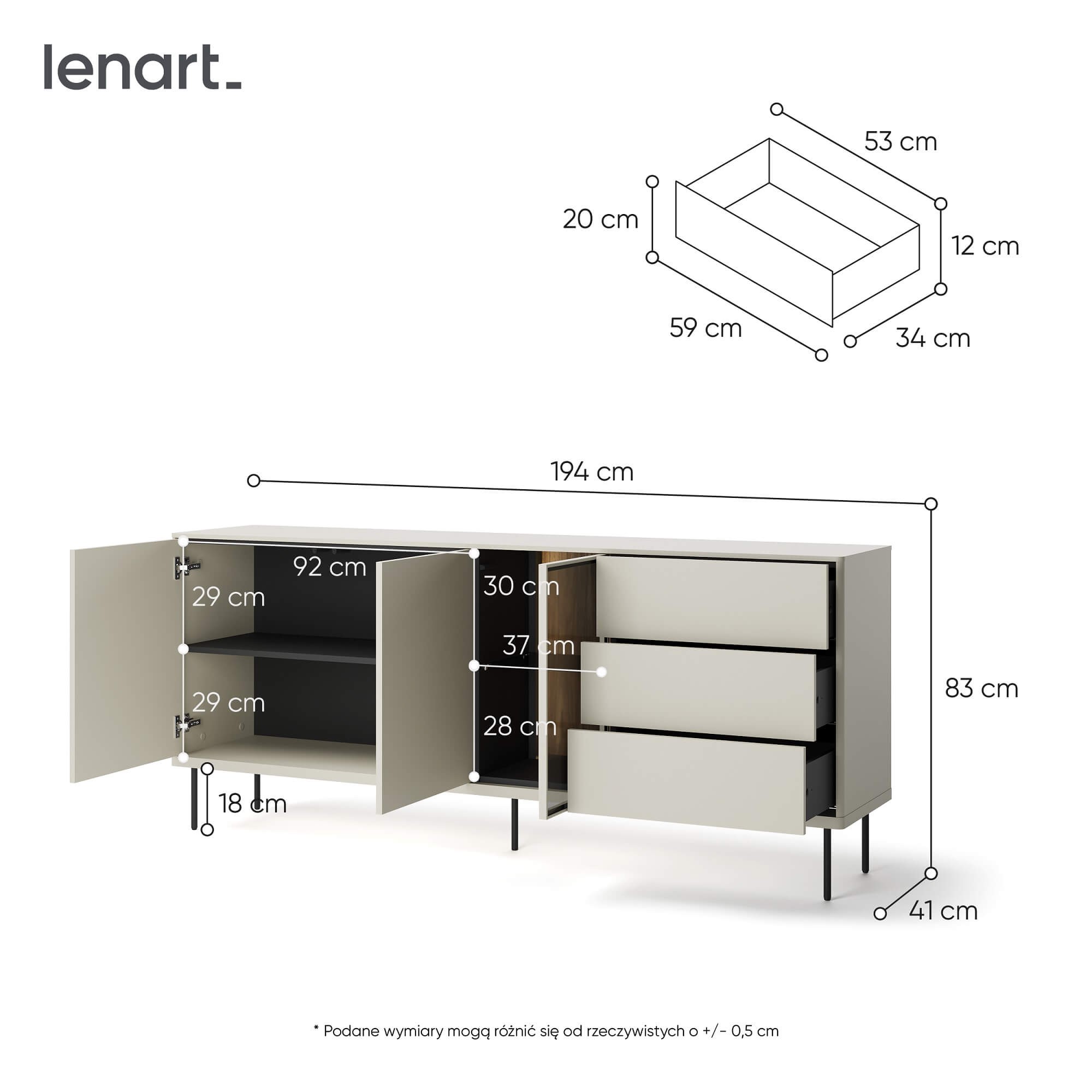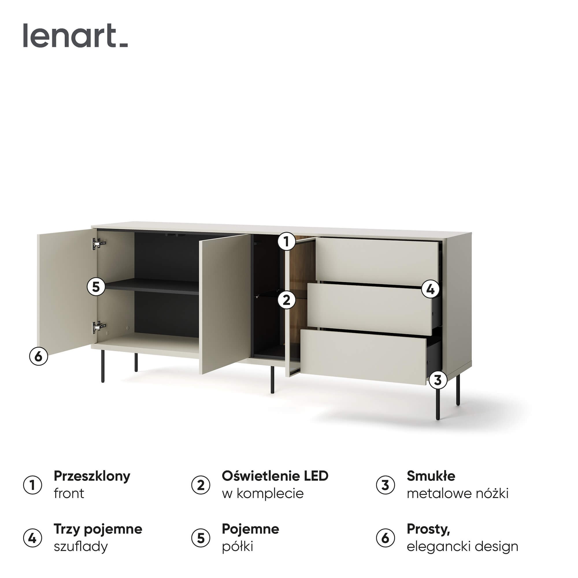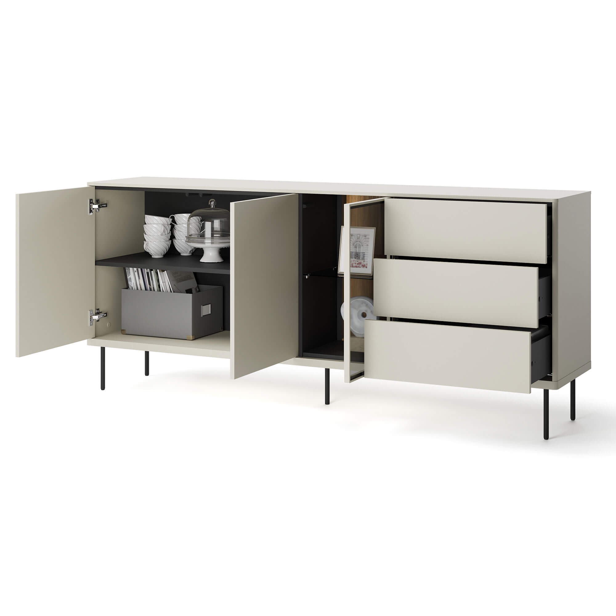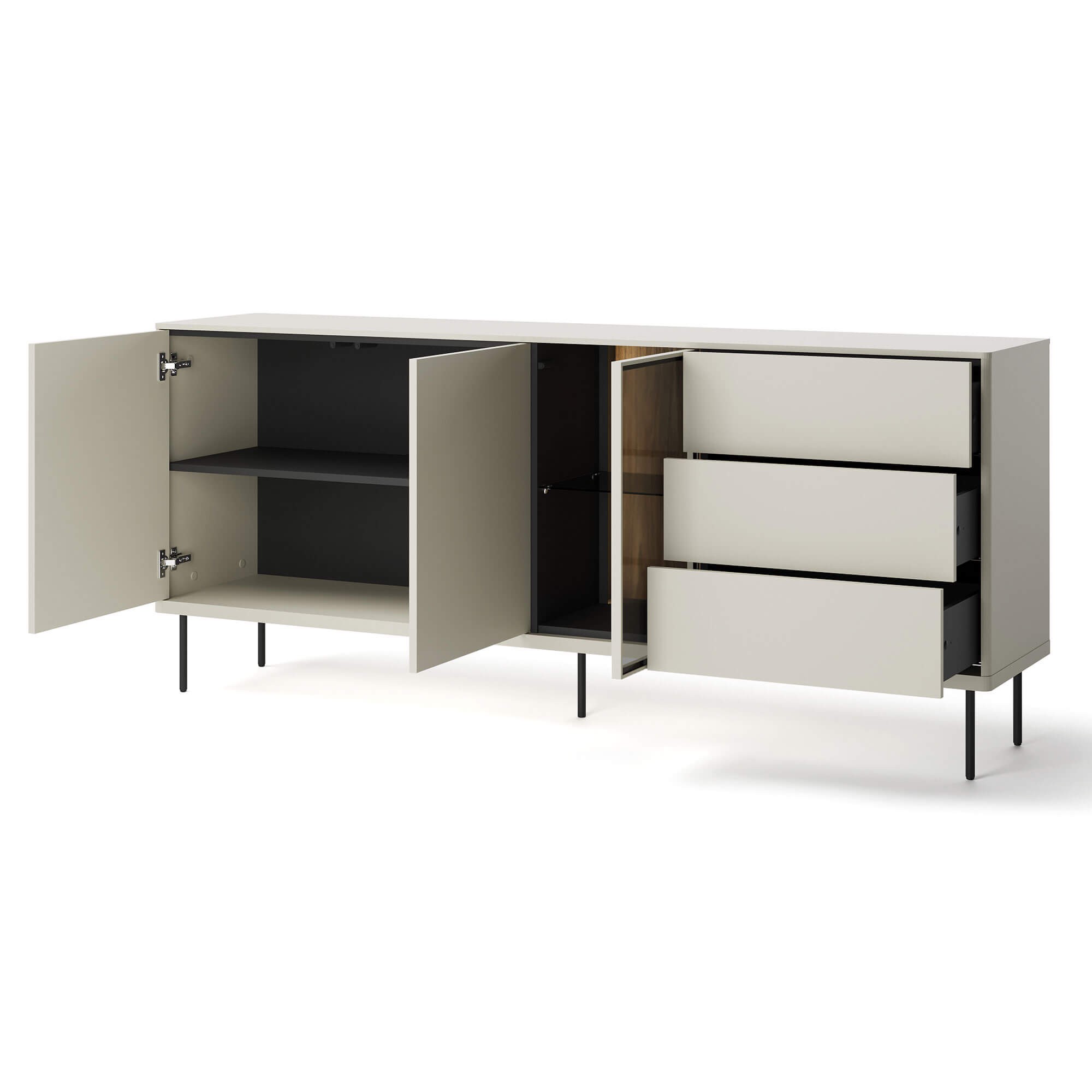 Dizainas: Moderni trijų durų komoda su 3 stalčiais