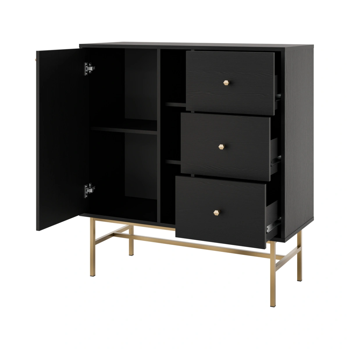 Juoda komoda „Tokyo 1F3S“ su spintele ir stalčiais