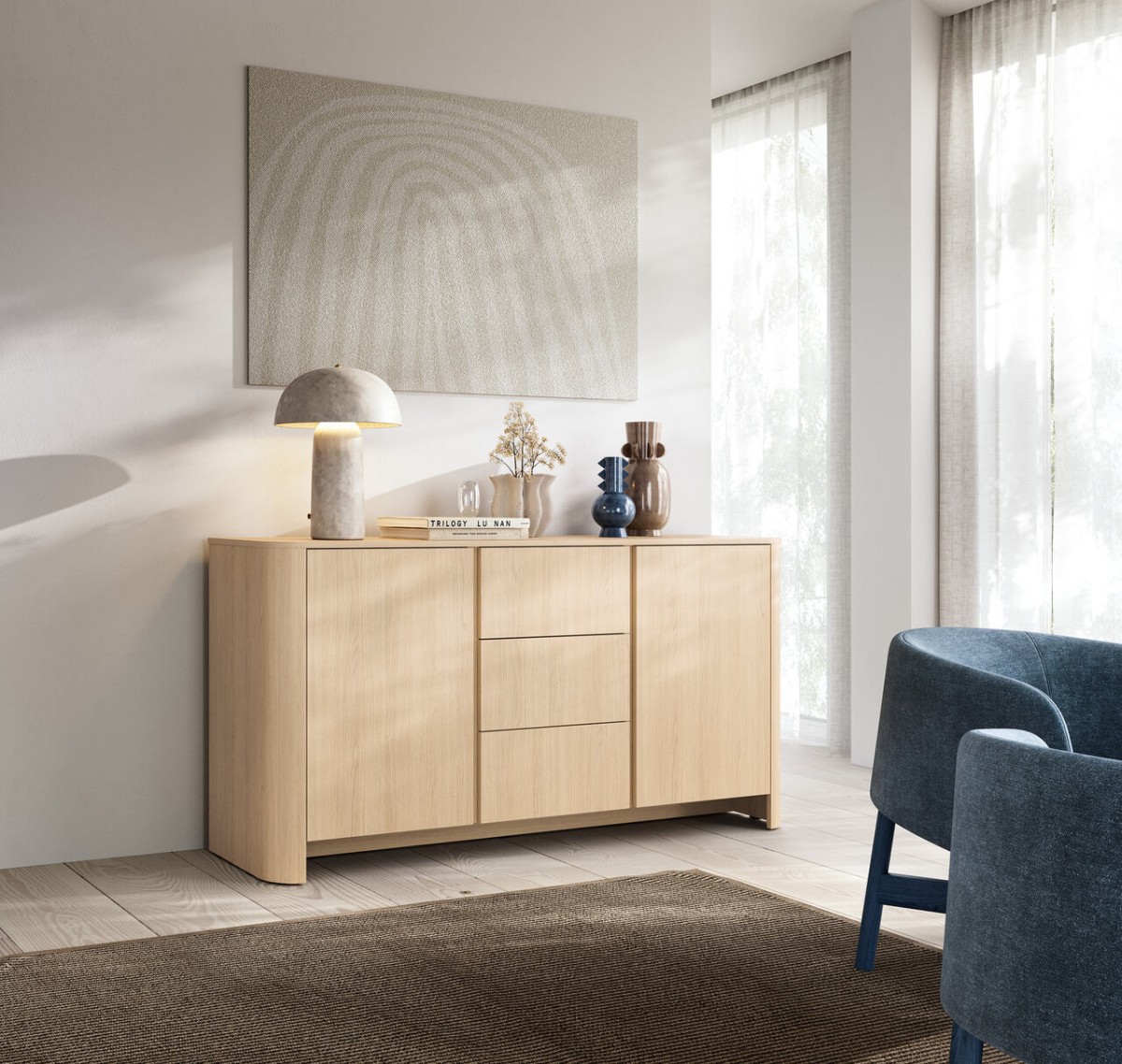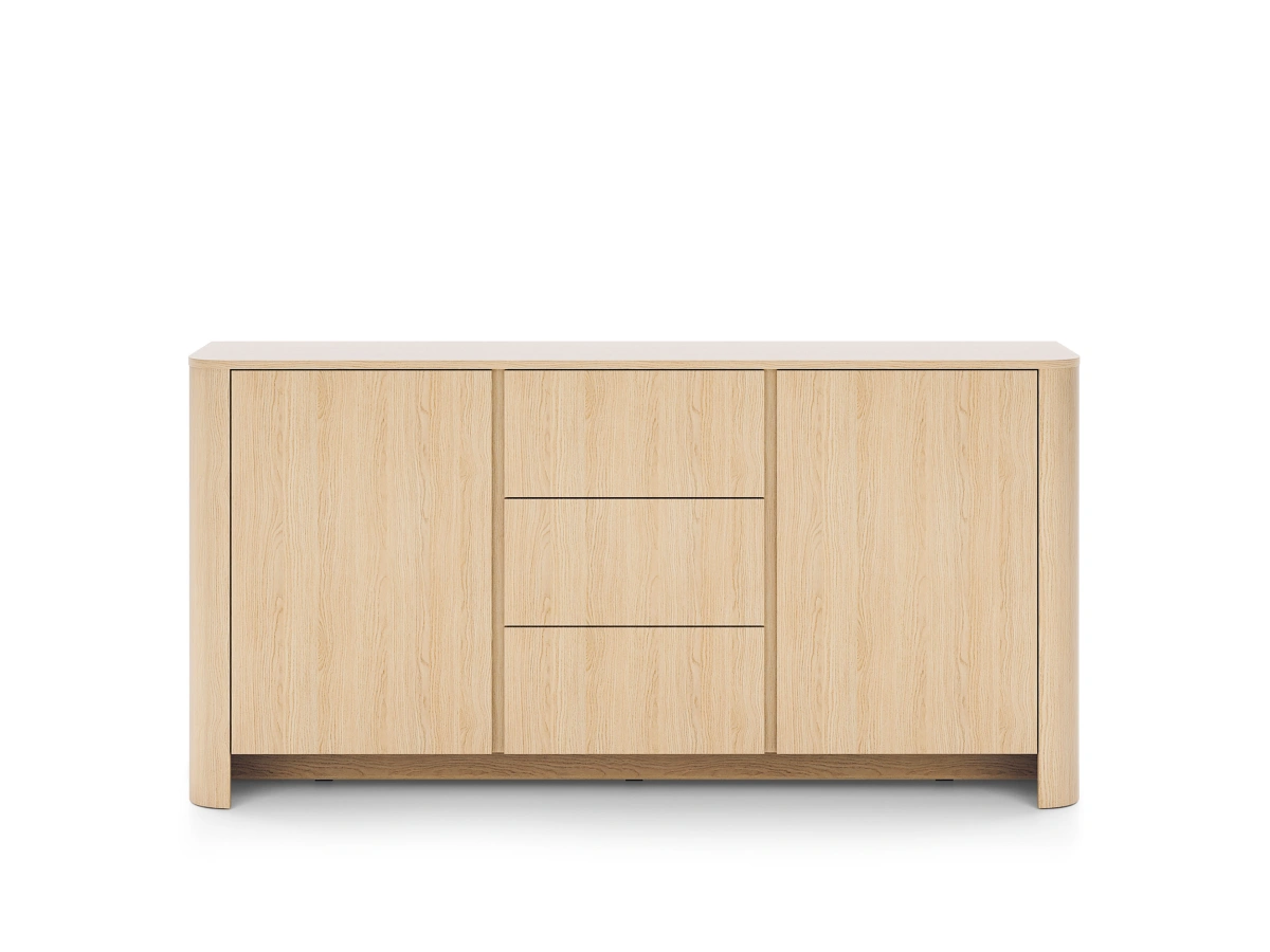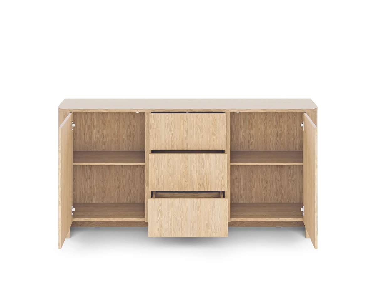 Bari KSZ168 komoda – turi dvi spinteles – lentynas ir tris stalčius už fasadų.