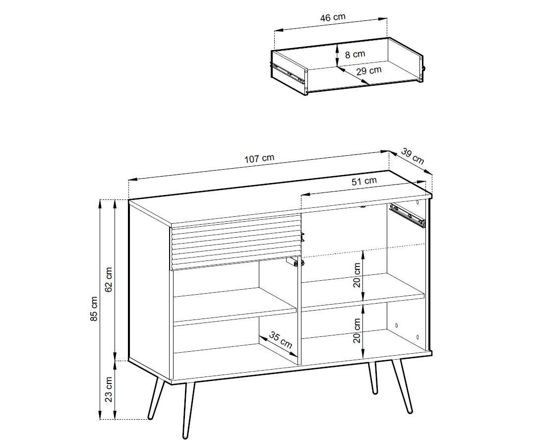 Oro KSZ107 komoda su spintelėmis ir stalčiais, juodos spalvos grioveliais MDF